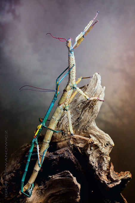 Dispongo de parejas adultas de Achrioptera Fallax , insecto palo azul.