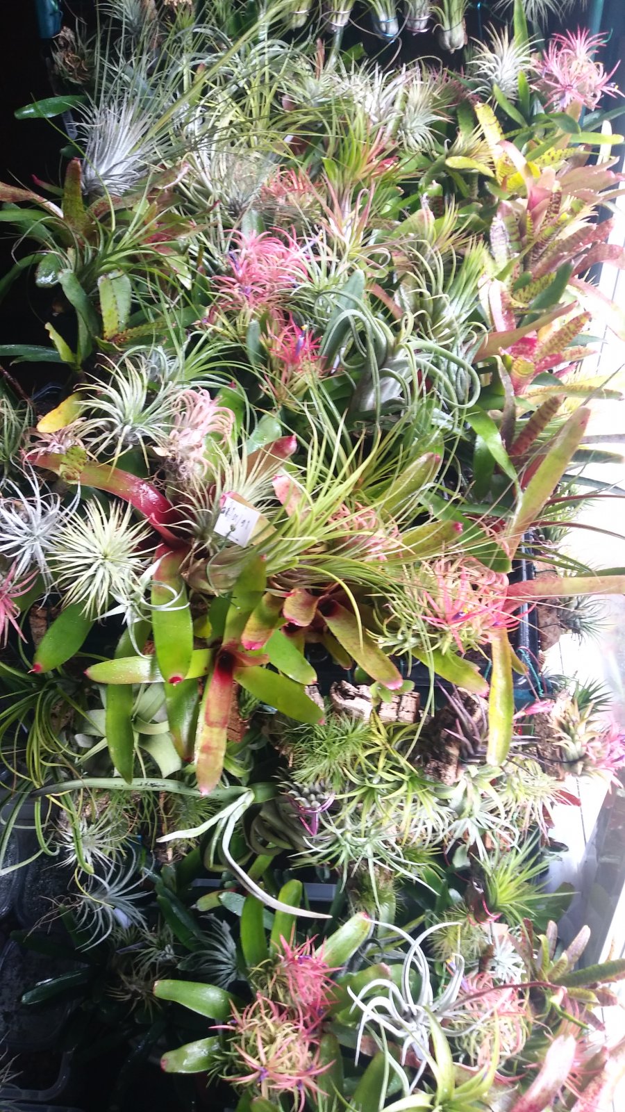 Un monton de bromelias , orquis y otras plantas para terrario.