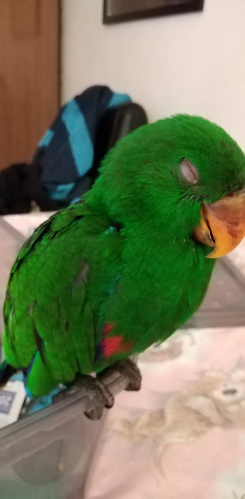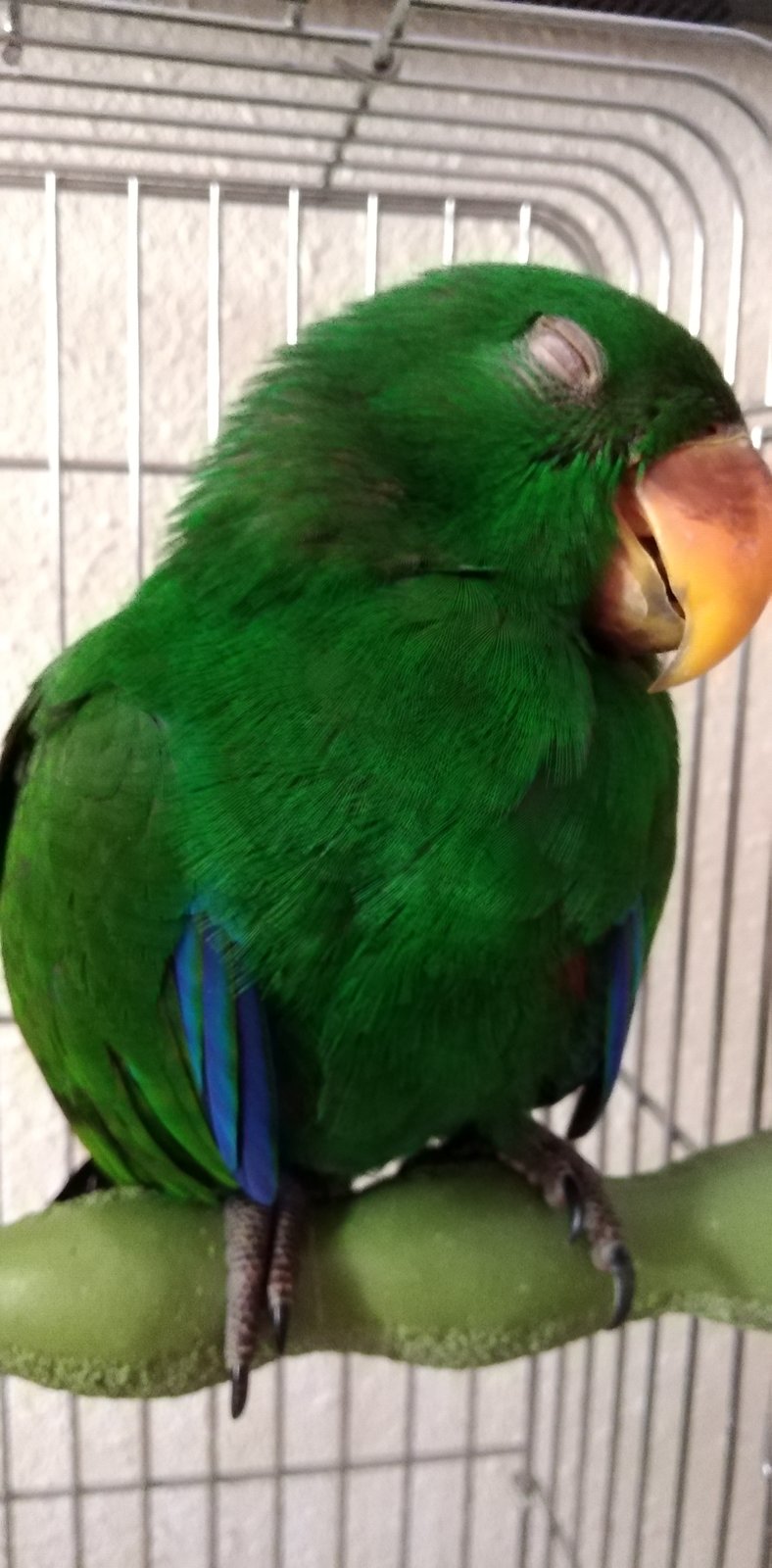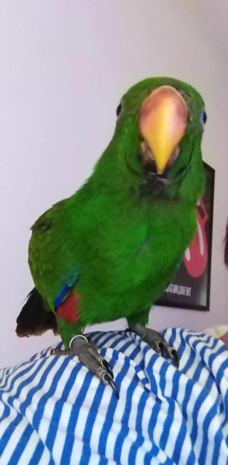 Eclectus roratus macho a dos tomas de papilla, Alicante