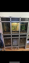45 € cada terrario y 10 la estantería. Si va todo el lote 340 € y regalo algunas luces led y luminarias de exoterra