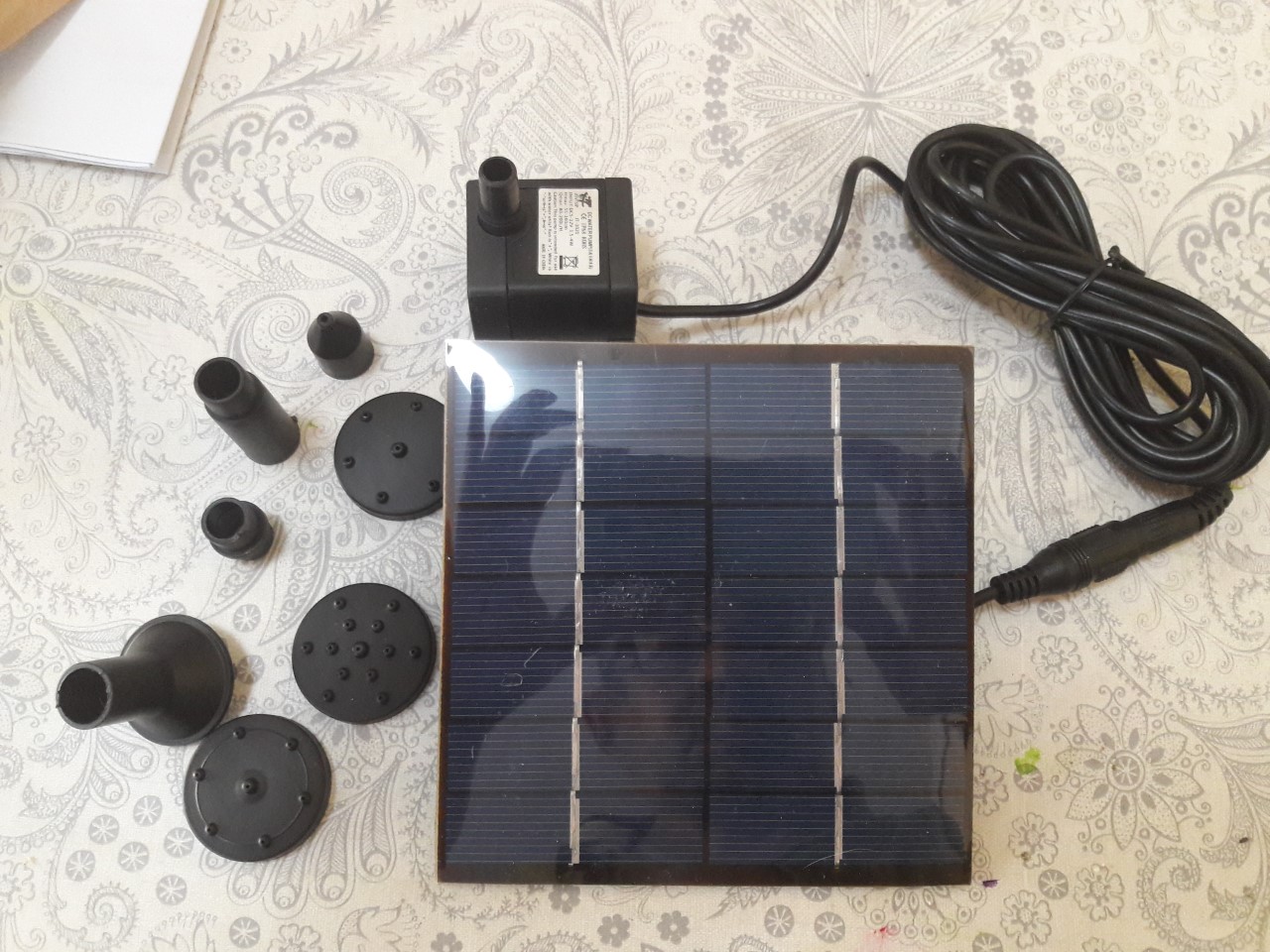 vendo fuente solar para estanques , 4 w , ideal para mover el agua sin necesidad de conexion electrica , nueva en su caja original , varios cabezales para lluvia , regadera , chorro gordo - 15 euros , evio a cualquier sitio de españa por 6 euros mas
