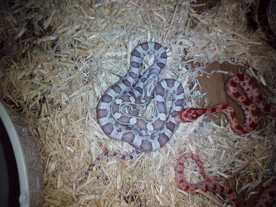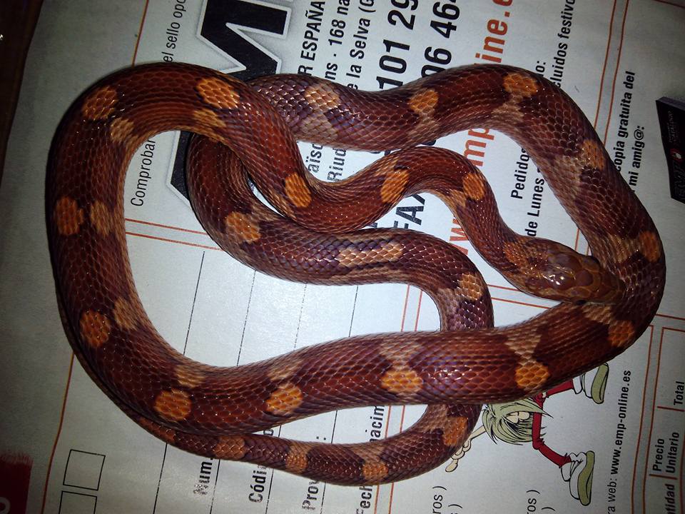 - Pantherophis guttata motley, es del verano 2014, comiendo raton con pelo descongelado. Precio: 40€