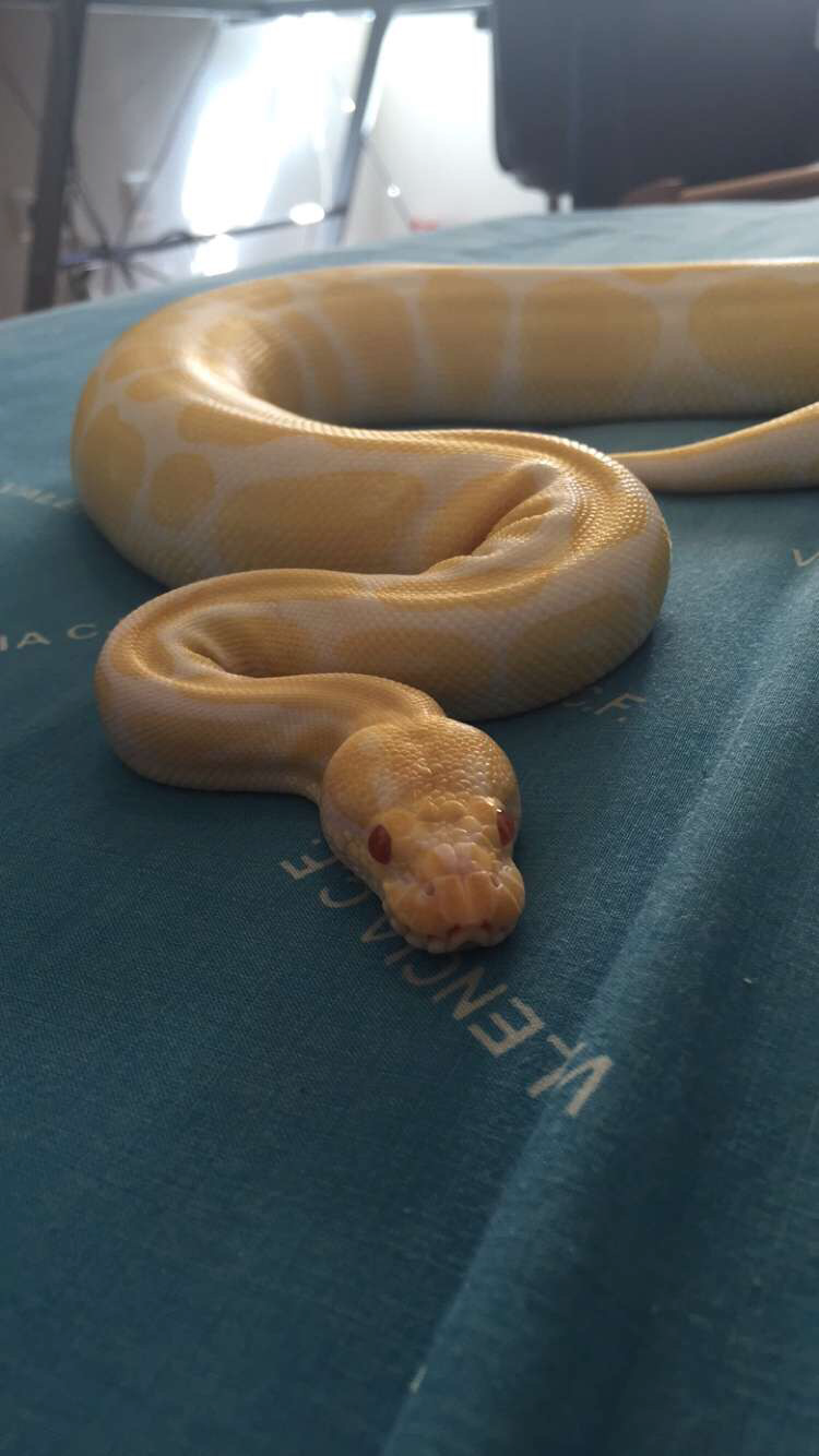 En venta hembra de pitón regius albina, está sobre los 1.150 gramos, en breves será reproductora.