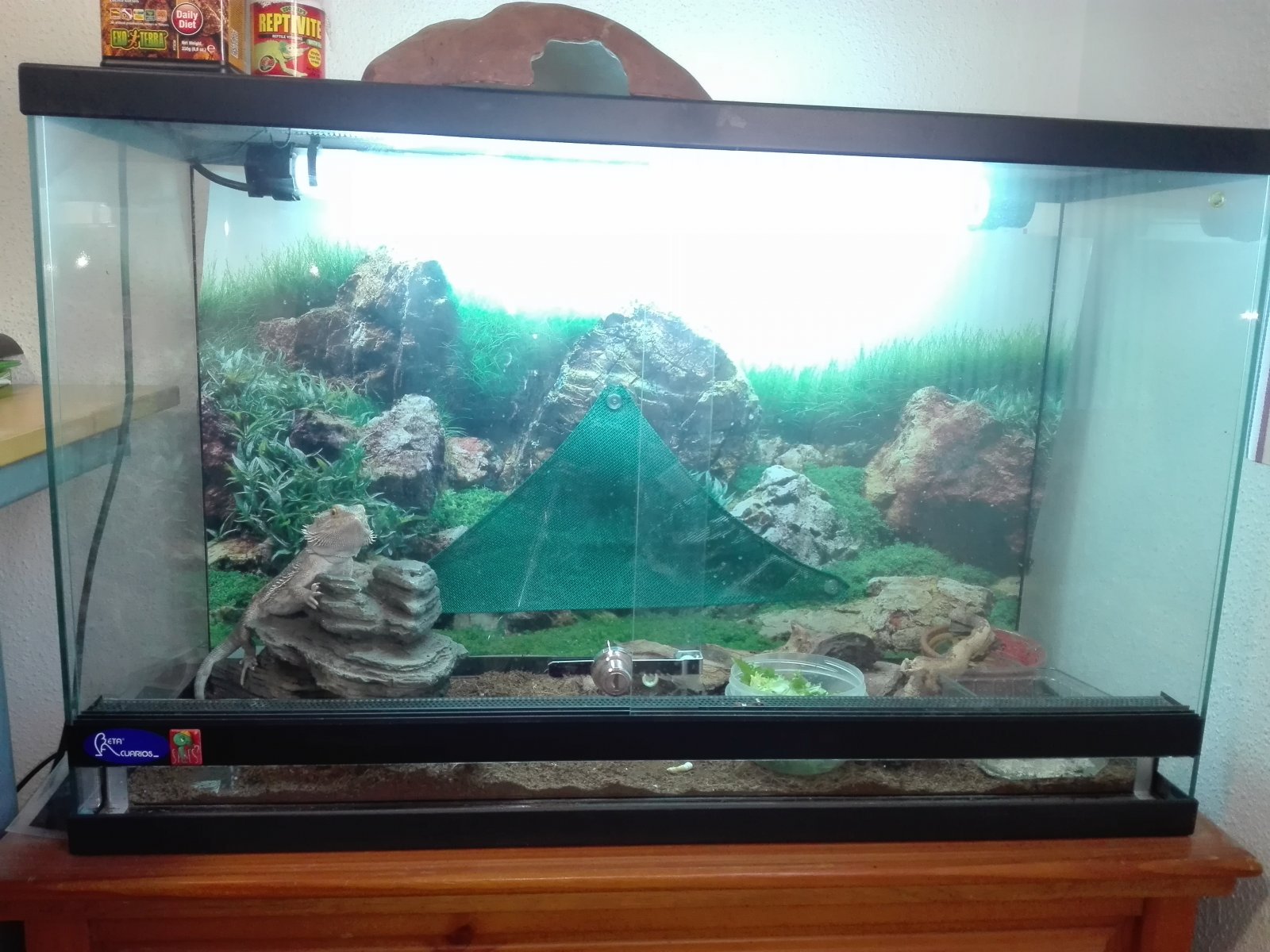 Buenas soy de Almería. Vendo pogona y Terrario grande con todo lo necesario para mantener la pogona. El Terrario viene con un sistema de luz instalado con temporizador, viene con su luz ExoTerra 10.0 (tiene hueco que permite añadirle una lámpara de calor), rejillas de ventilación, cerradura, decoración y manta eléctrica. Lo vendo con pienso para pogona y bote de vitaminas. También incluyo un saco grande de sustrato de fibra de coco para su Terrario. La pogona es un macho juvenil adulto de unos 2 años perfectamente cuidada, conserva su cola entera y todos los dedos. No tiene ningún tipo de enfermedad. Totalmente dócil se puede coger sin problema.