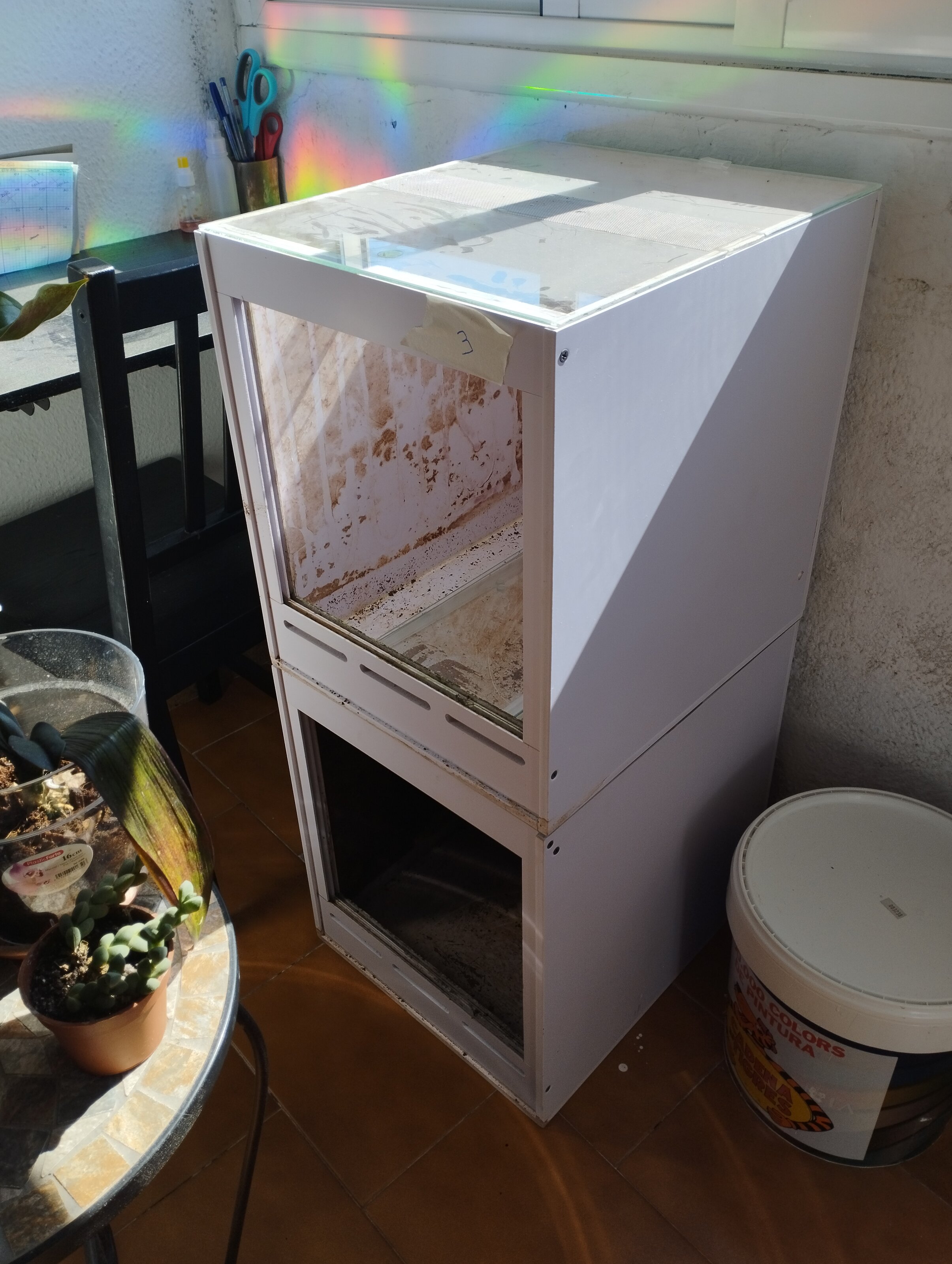 Hola regalo terrario de PVC blanco 45*40*45 puestas de cristal tengo 2 soy de Barcelona Ciudad