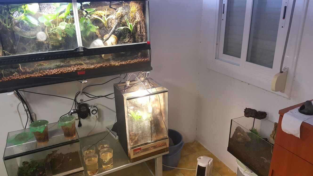 2. 1. 3. ; muy posible 2. 4. Reproductores y semiadultos de Dendrobates tinctorius nominal más terrario Exoterra 90x45x45 plantado con sistema de lluvia, luz, temporizador, y dos terrarios de 30x30x40 uno vertical y otro horizontal, y dos renacuajos de éstos.