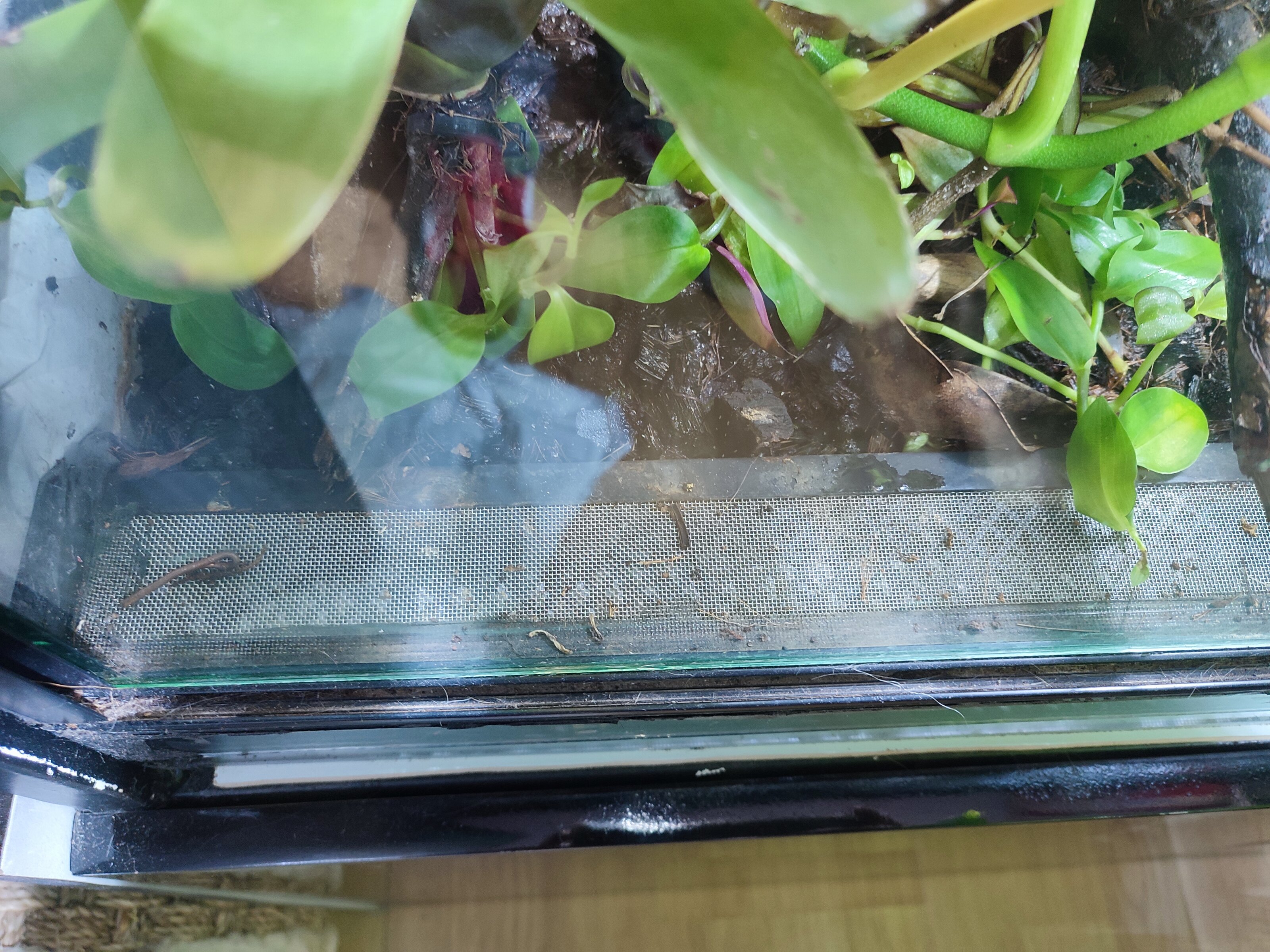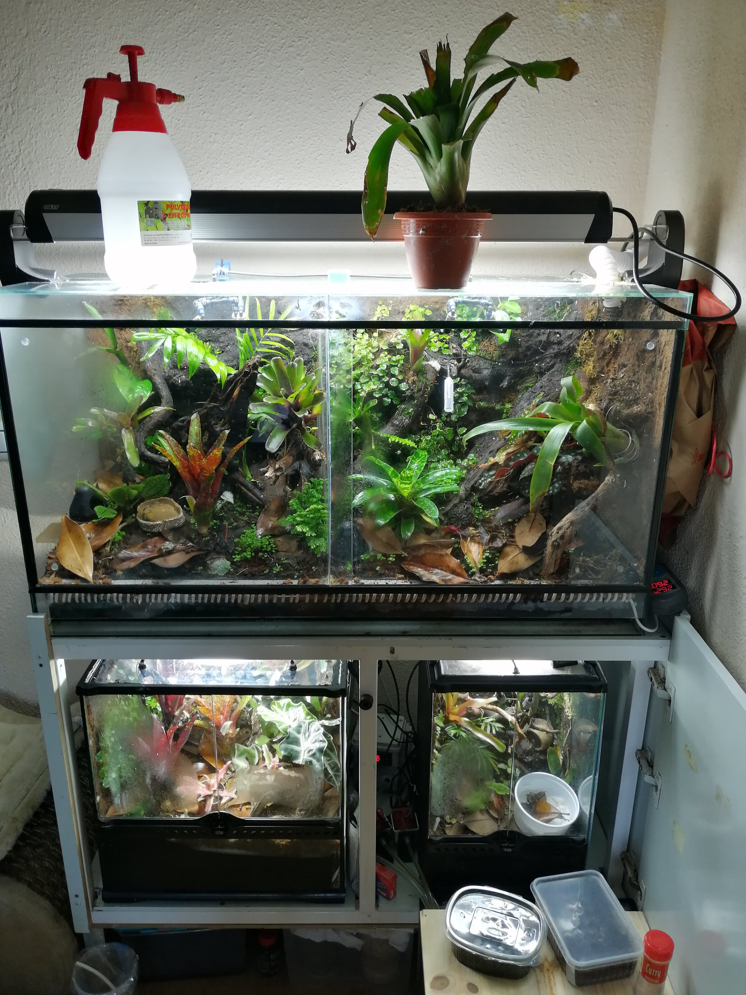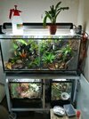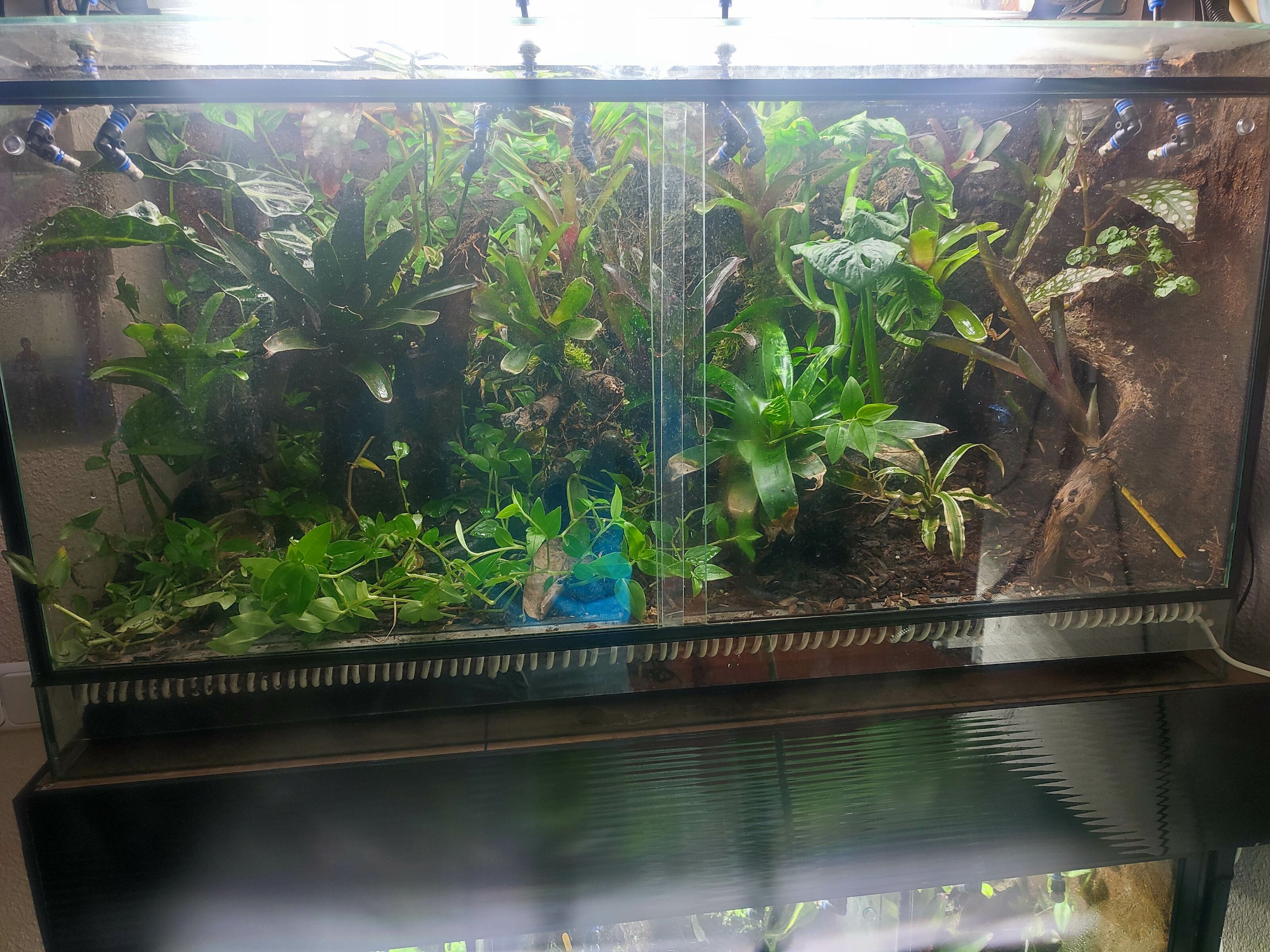 Terrario vivario comunitario de 100x40x55 CNT ,plantado con begonias, trepadoras, musgo y muchas bromelias, actualmente funcionando, manteniendo dendrobates,