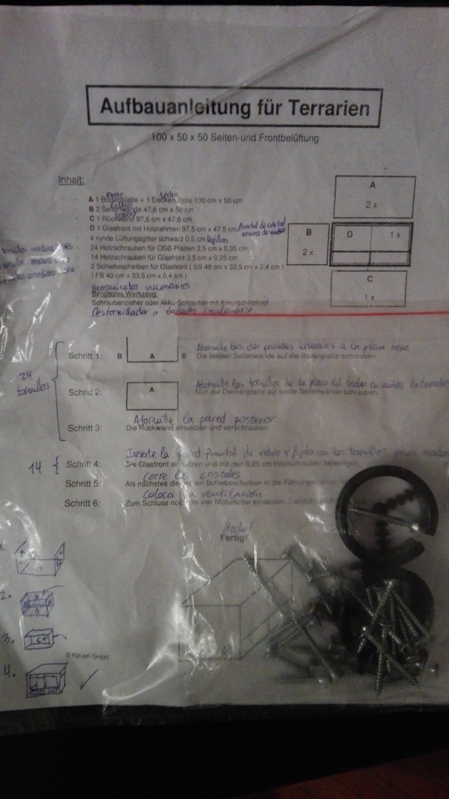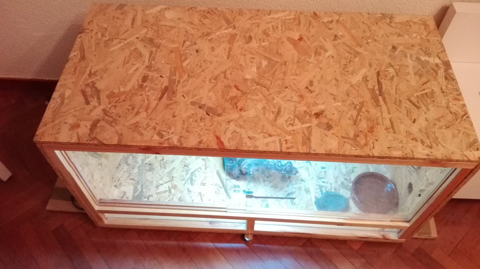 Vendo un terrario madera OSB tratado con resina hidrofuga, traido de Alemania, es desmontable, las medidas son 100x50x50cm, válido para cualquier animal, frontal de cristal, rejillas de ventilación, guías para ocultar cables... Recogida en Madrid, se encuentra desmontado tras un uso de un año, para recogerlo montado consultarme. Precio:100euros negociables, ya que puedo cambiarlo por material de terrariofilia de valor similar.