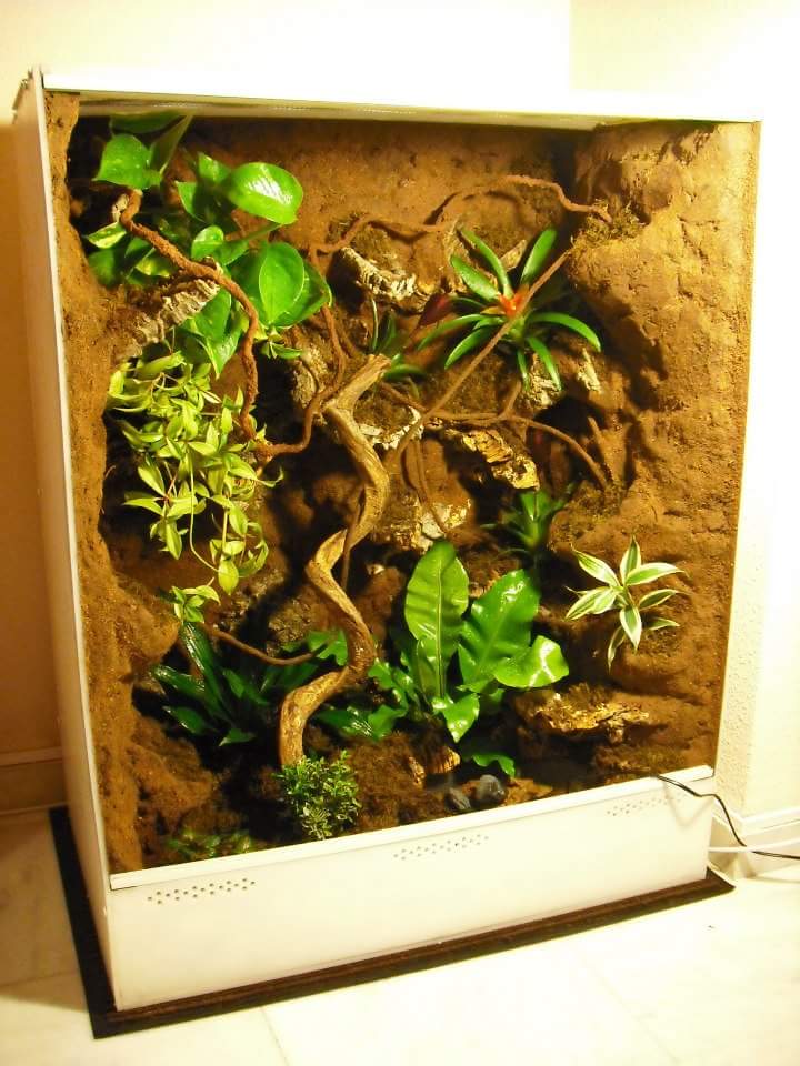 Vendo terrario, hecho a mano, de 100cm alto, 80cm de ancho y 50cm de profundidad, en polietileno blanco (180€) y cristales correderos de metacrilato (80€), ambos materiales muy resistentes a cualquier tipo de impactos. Decorado al detalle con corcho (15€), espuma de poliuretano y adhesivo ms (140€), fibra de coco y turba (15€), lianas, tornillos, rejillas, perfiles pvc. . . (25€) Unos 455€. Tardé mes y medio en realizarlo ya que soy muy perfeccionista. En perfecto estado usado solo con plantas. Precio negociable.