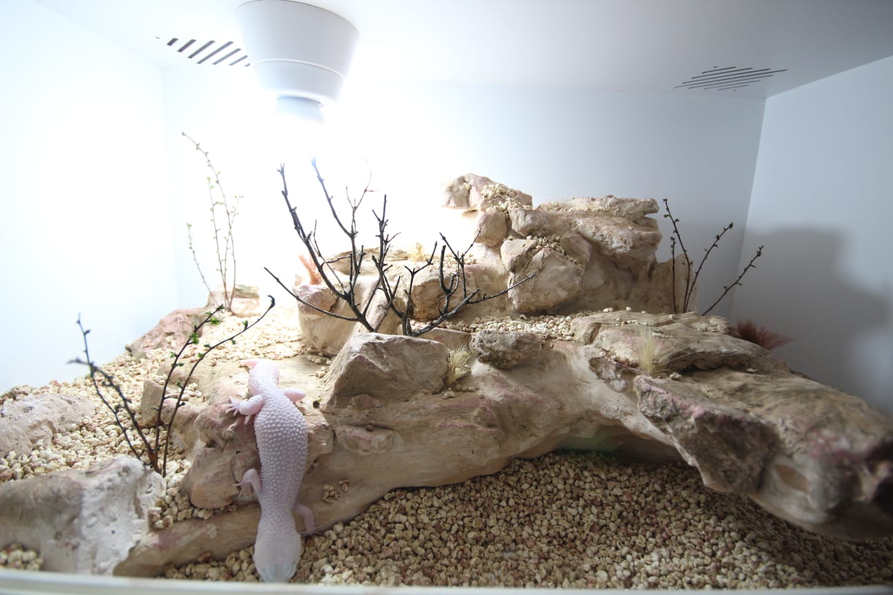 Lo doy tal cual en las fotos con dos casquillos para bombillas y un fondo rocoso