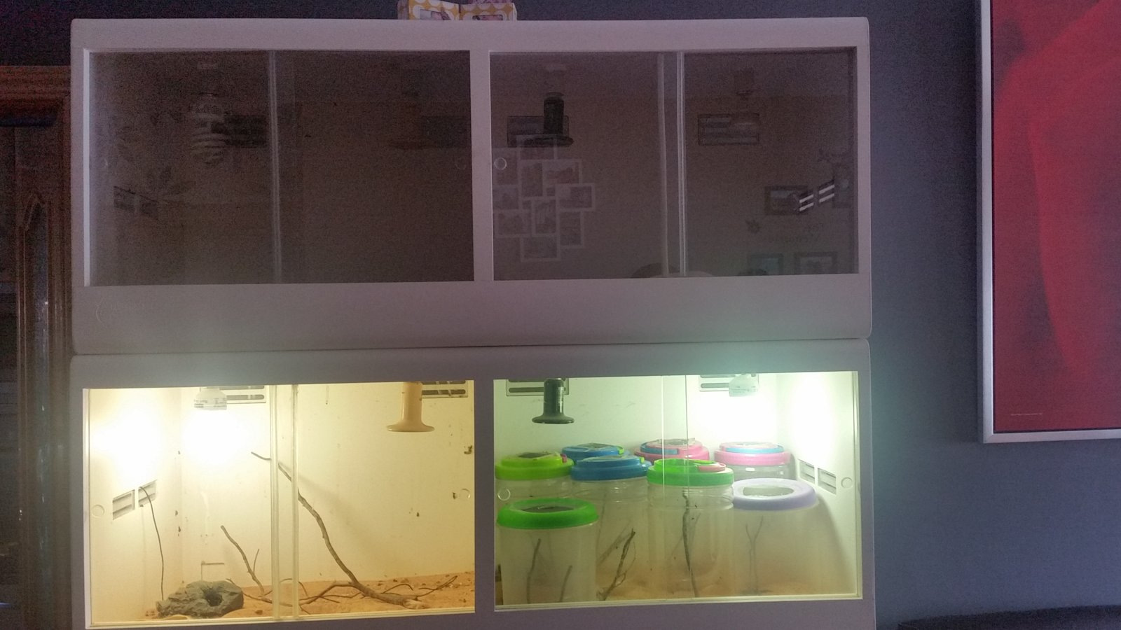 Pongo en venta terrarios en perfecto estado apenas sin uso, con división en medio y con dos casquillos para bombilla en cada hueco, puedo vender por separado o hago precio para el todo mueble con ruedas y cajones incluido. también pongo a la venta incubadora Reptibator, Thermo control pro II y varias bombillas de cerámica y UV y algunas reactancias. A poder ser entrega en mano en Madrid. Puedo hacer precio especial si te quedas todo. El precio es desde Interesados por privado 652938294