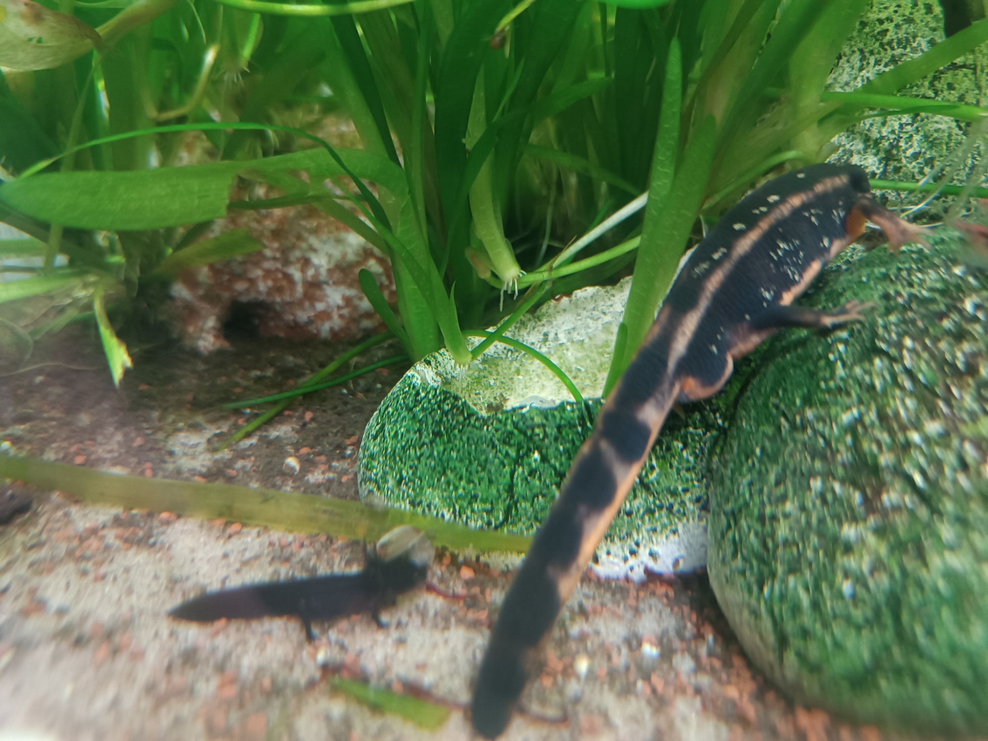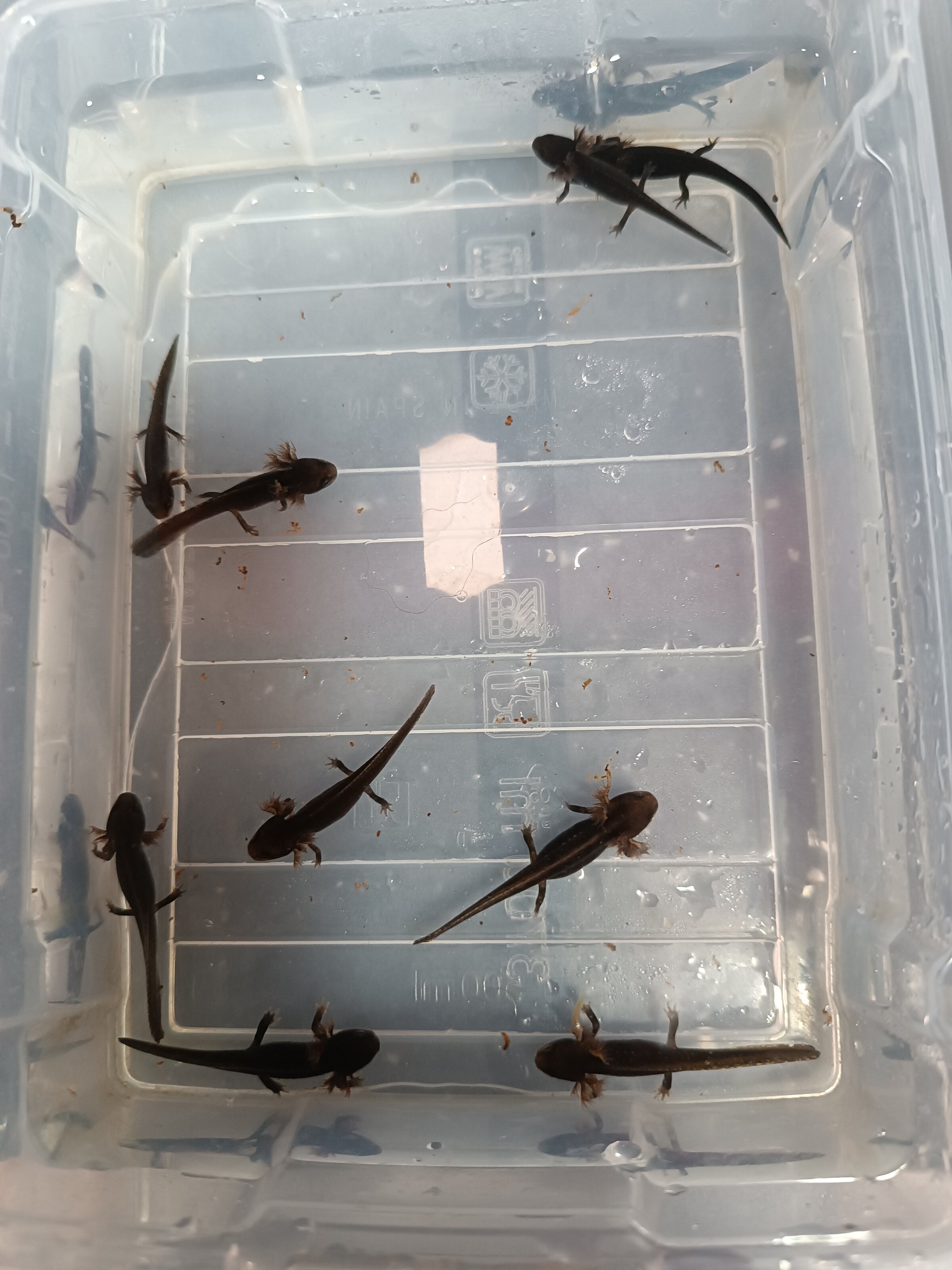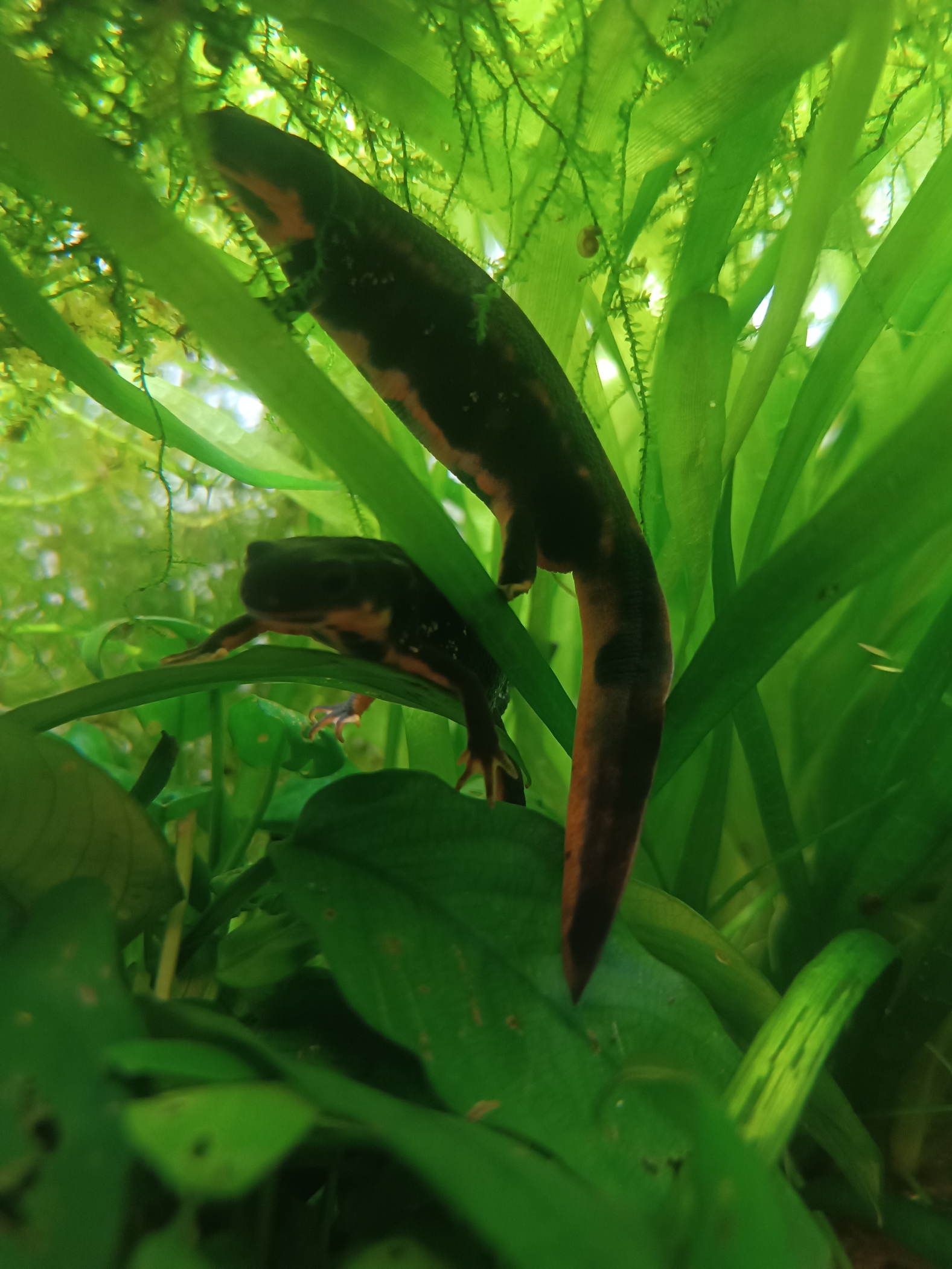 Hola, tengo tres tritones cynops ensicauda desde hace un par de años, son dos machos y una hembra . Hace un par de meses mas o menos al limpiar el acuario vi que había unas pequeñas larvas, las he intentado sacar adelante ( no tenía ni idea ) les he estado dando artemia viva y ahora ya van comiendo también larva roja. Parece que van a salir adelante, yo creo que les falta poco para que empiecen con la metamorfosis.