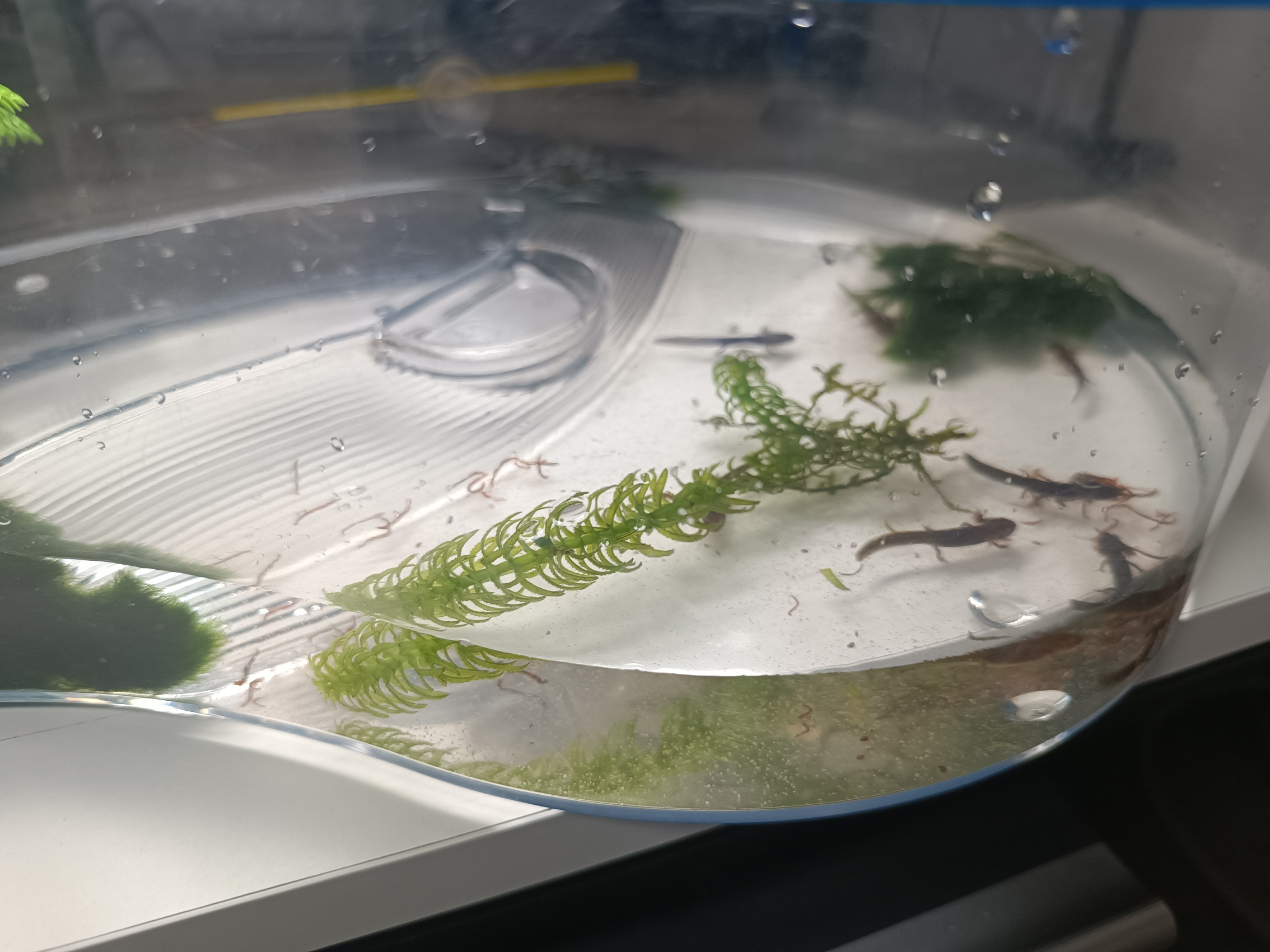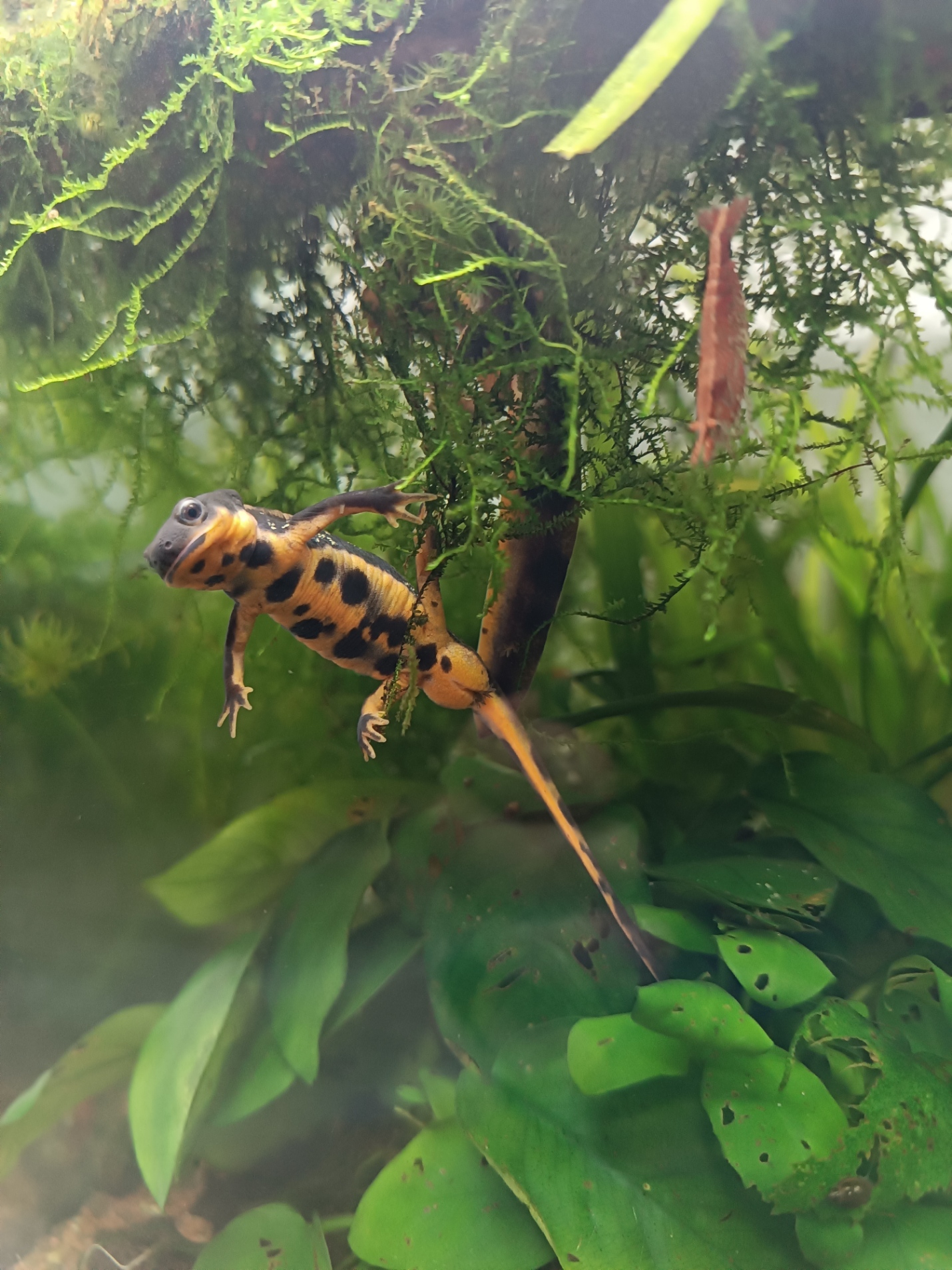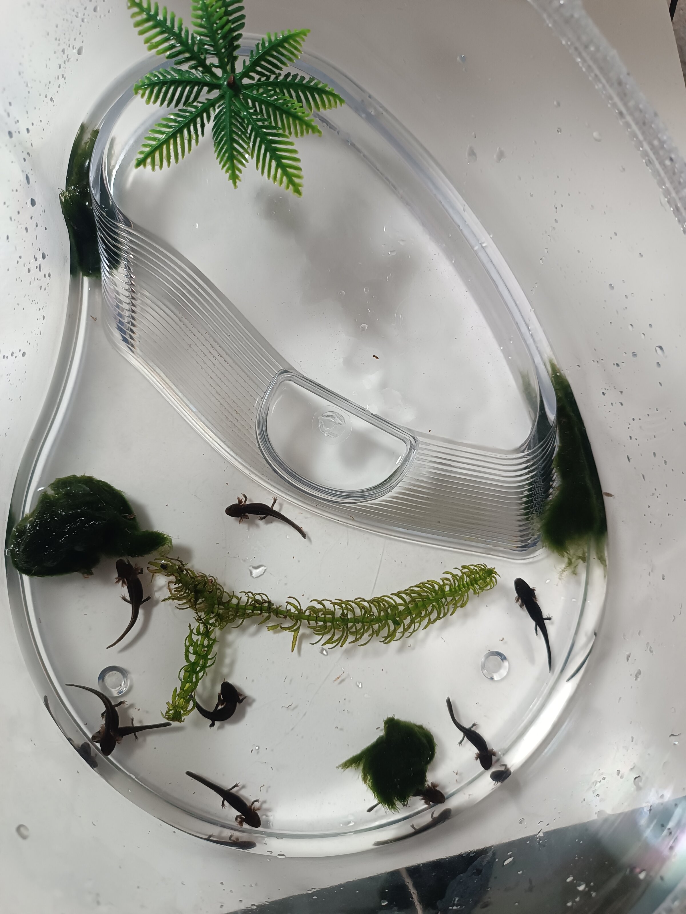 Hola, tengo tres tritones cynops ensicauda desde hace un par de años, son dos machos y una hembra . Hace un par de meses mas o menos al limpiar el acuario vi que había unas pequeñas larvas, las he intentado sacar adelante ( no tenía ni idea ) les he estado dando artemia viva y ahora ya van comiendo también larva roja. Parece que van a salir adelante, yo creo que les falta poco para que empiecen con la metamorfosis.