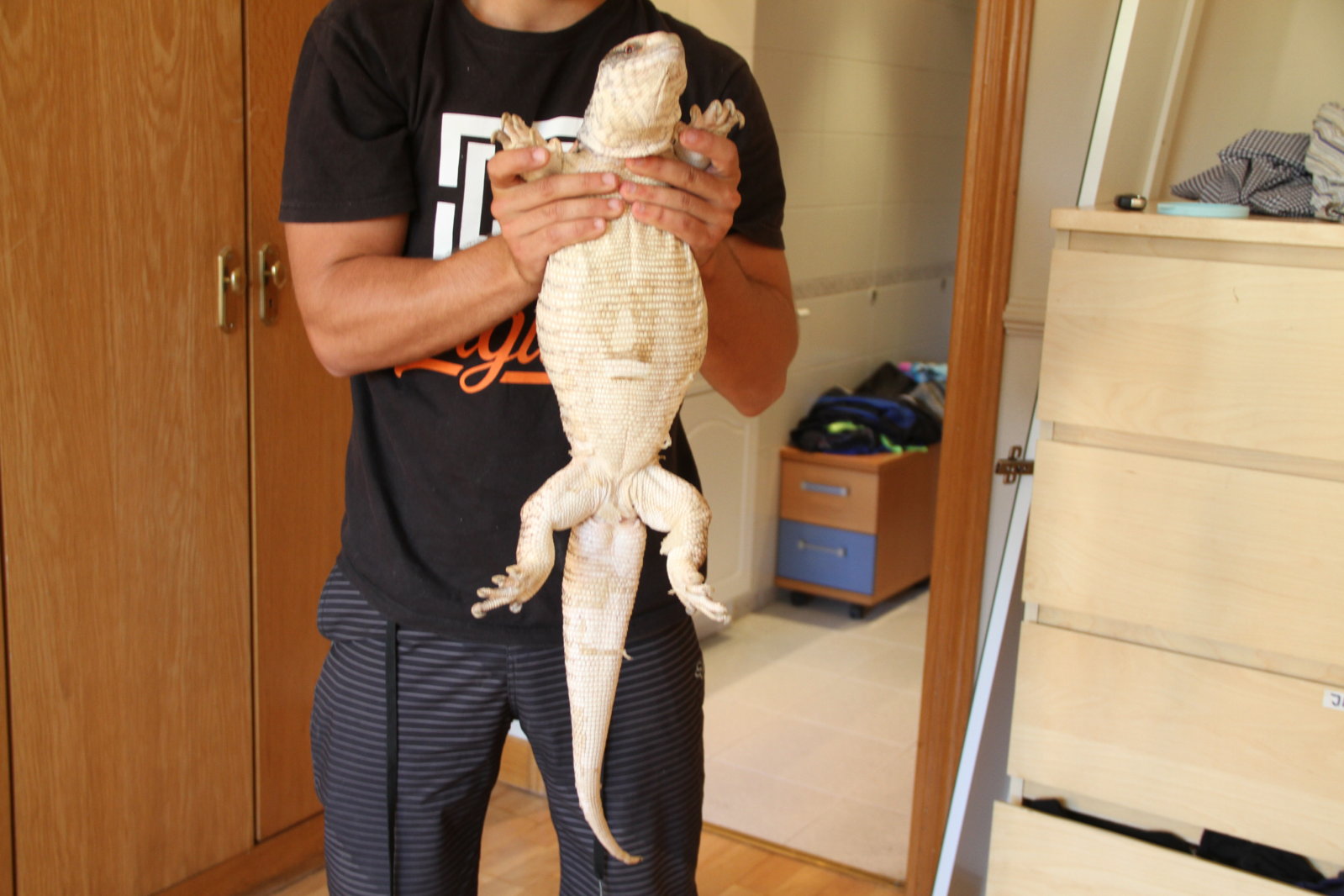 Hola pongo a la venta mi varano de la sabana, es una hembra de unos cuatro años y medio, súper tranquila y de carácter muy bueno, come normalmente presas muertas pero también puedes darle vivo, pesa unos 4kg y mide unos 90 centímetros, es perfecta para reproducir, la entrego en Madrid con sus papeles en regla CITES y factura de compra, también envío a toda España a cargo del comprador, por MRW servicio urgente tarda un solo día y sale por unos 15 o 20 euros. Mi número es 646169288 180 euros