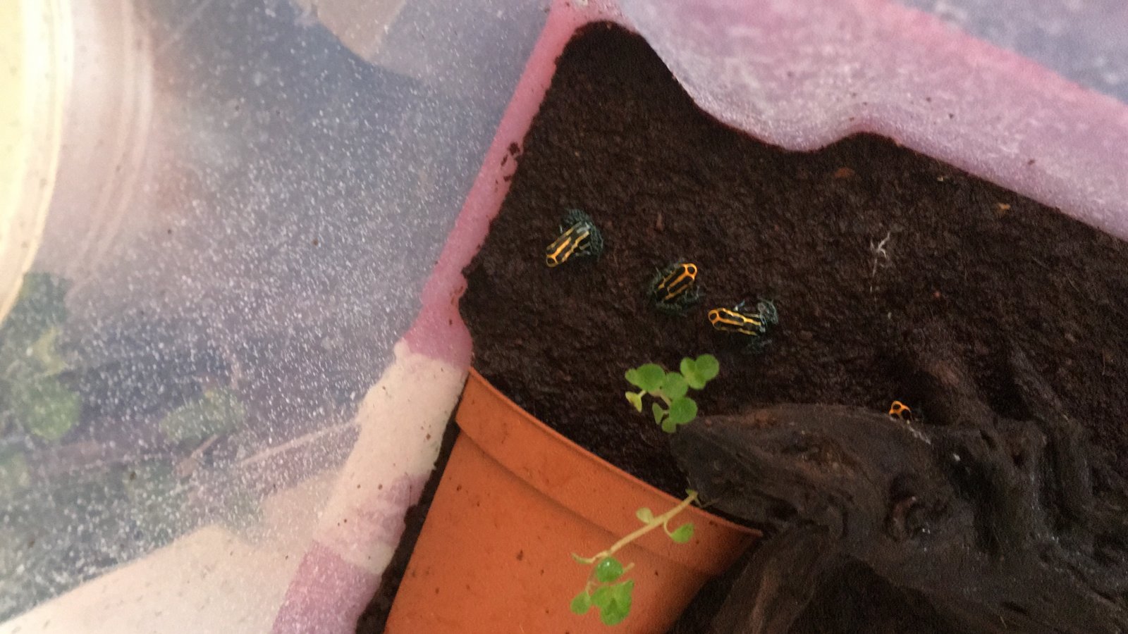 0.0.X ranitomeya ventrimaculata juveniles. Comiendo de todo (colémbolo, drosophila...) Precio 1x28, 2x50, 3x70, 4x90, 5x100 Recogida en mano en madrid, no hago envíos. Cambio por otras dendros o terrario. Solo whatsapp por favor.