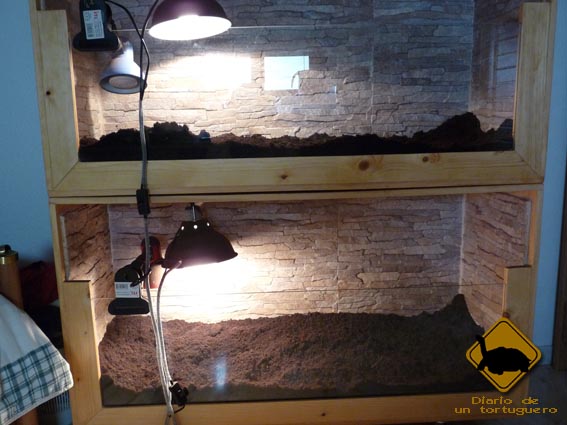 Hay dos abiertos para tortugas y uno cerrado para saurios. Tienen unos 120 cm de largo y 40 de ancho. Es mejor verlos para hacerse una idea.