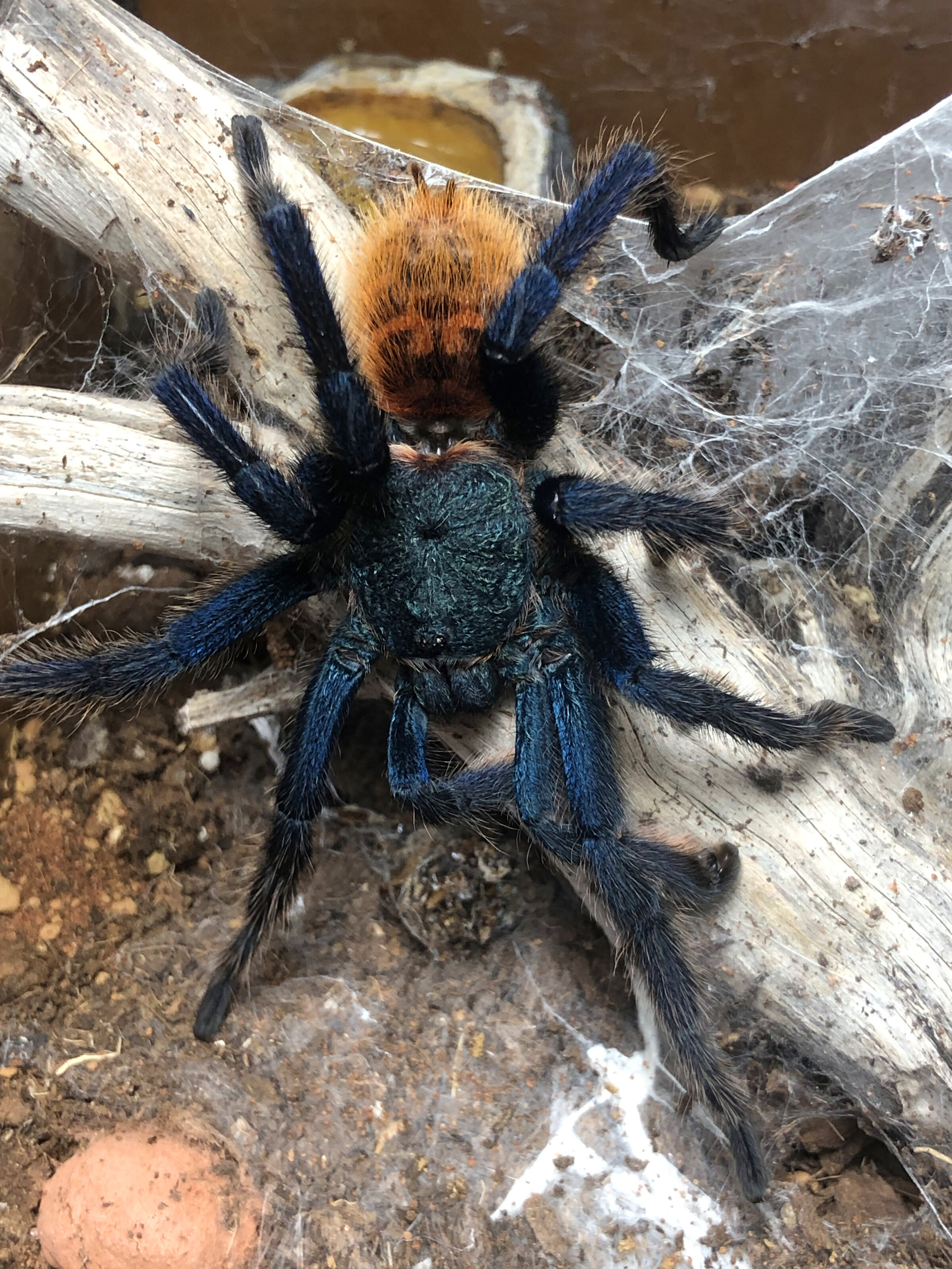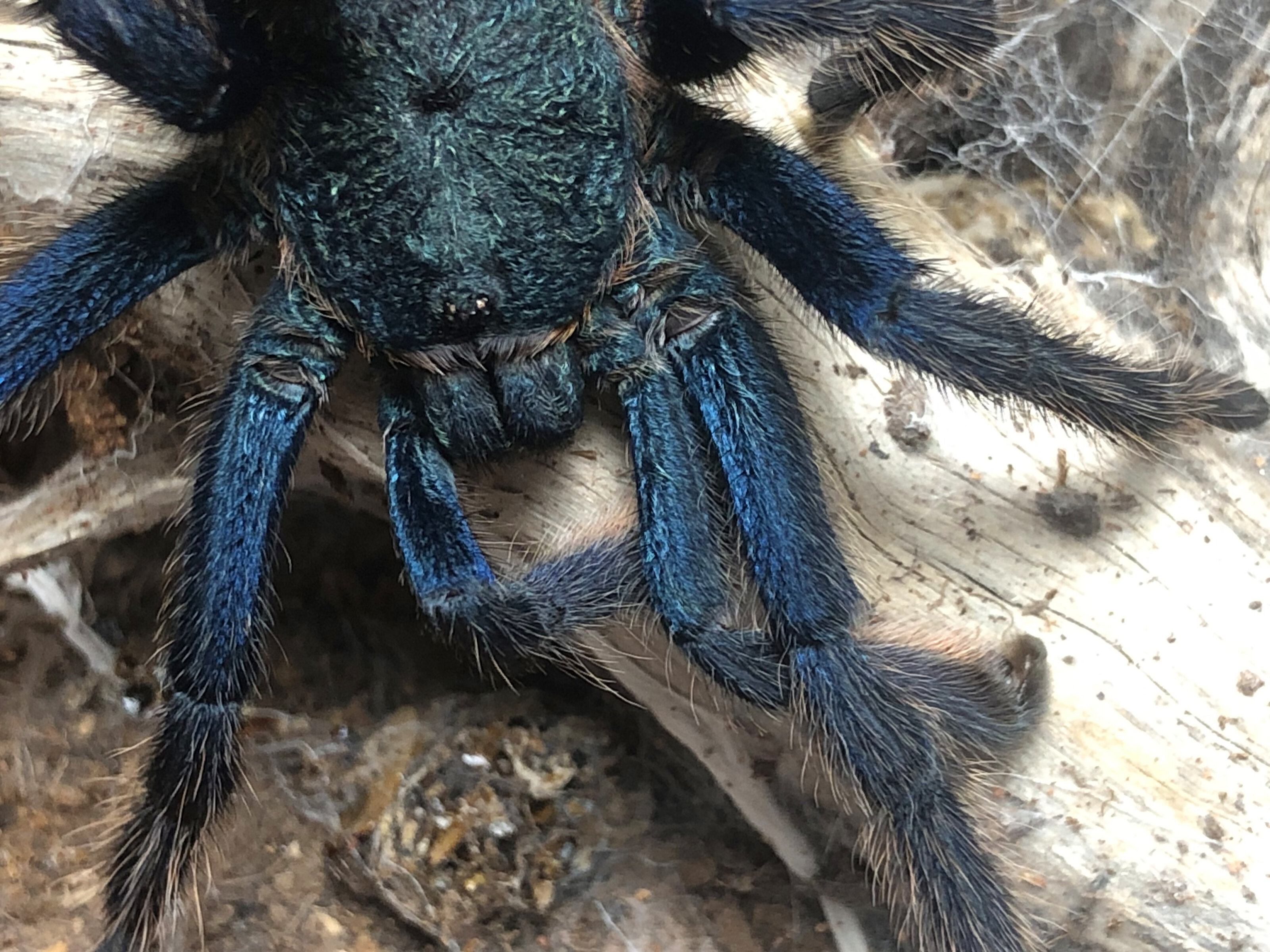 Macho de Chromatopelma cyaneopubescens. Mudo el 21/08/2025, preparado para la cría en cautividad.
