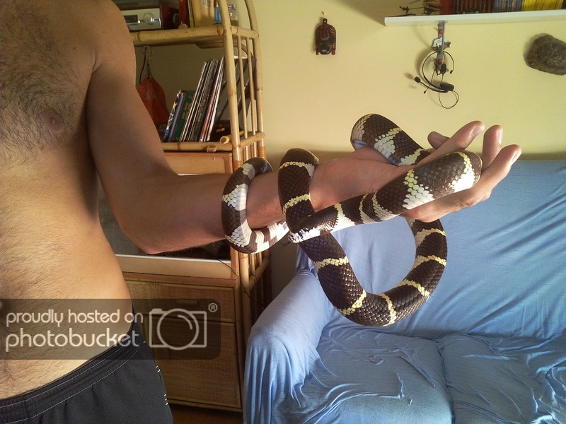 Serpiente muy mansa, se puede manipular perfectamente y comiendo congelado sin problema.