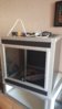 Vendo terrario de medidas 45X45X45 con puertas correderas de cristal, paredes de pvc en color negro y cantoneras de aluminio. Tiene instalado un panel radiante habistat, luz interior y termostato digital. Además está preparado para instalar unas barras de plástico en el interior (son tres) diseñadas para serpientes arborícolas que también entrego con el terrario.