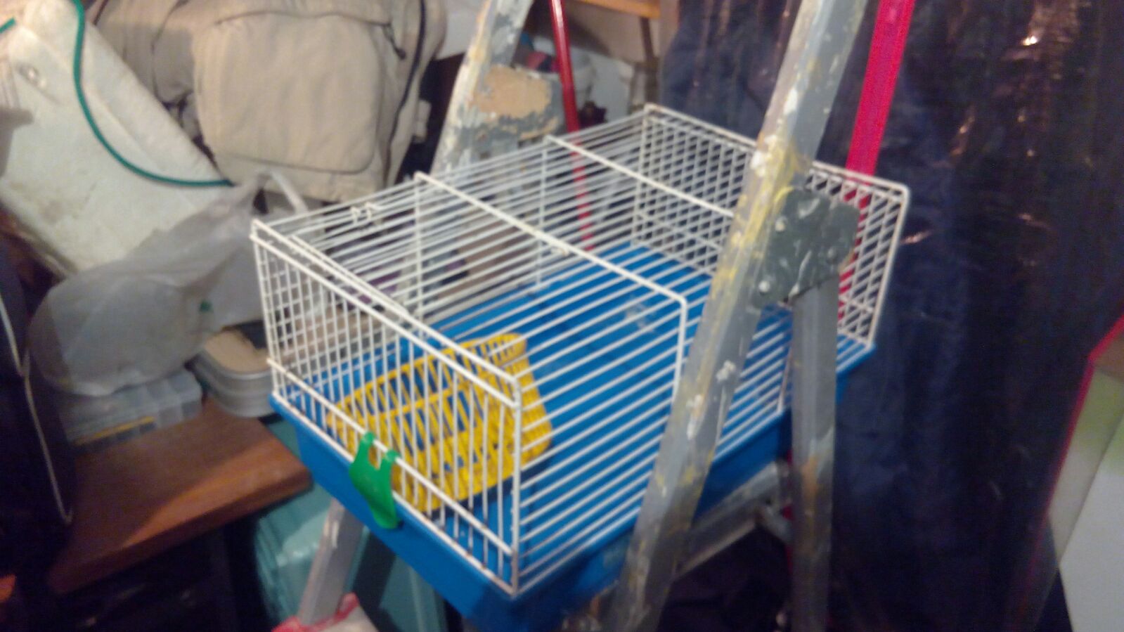 -Vendo una jaula para hamster con ruedecita, de plastico y alambre, medira 35 de largo x 20 de ancha x 15 de alta.( 5 euros