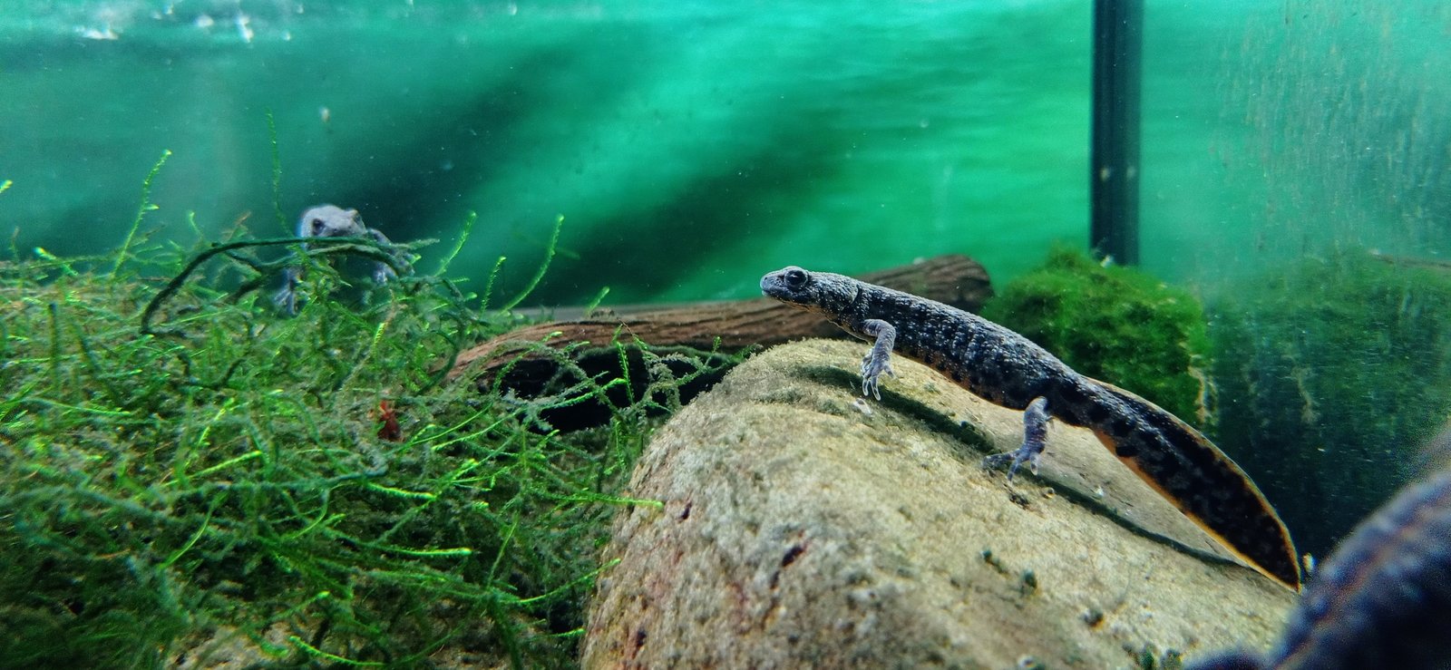 Vendo juveniles de Triturus karelinii , Triturus dobrogicus , Hypselotriton orientalis y Ensicauda popei.
