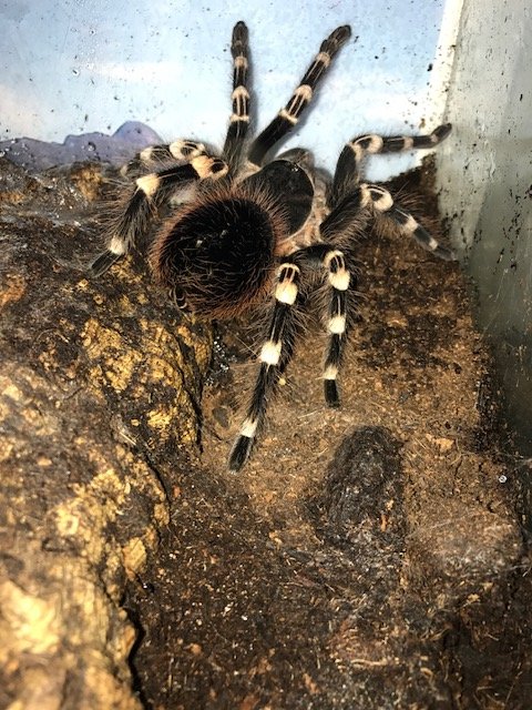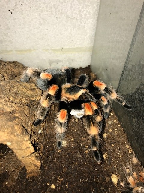 Hembra Acanthoscurria Geniculata, 3 años y unos 12 cm. 50 € Se envia a cargo del comprador (7€) o se entrega en mano en Malaga, en caso de recogida se regala terrario de cristal.