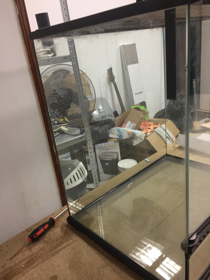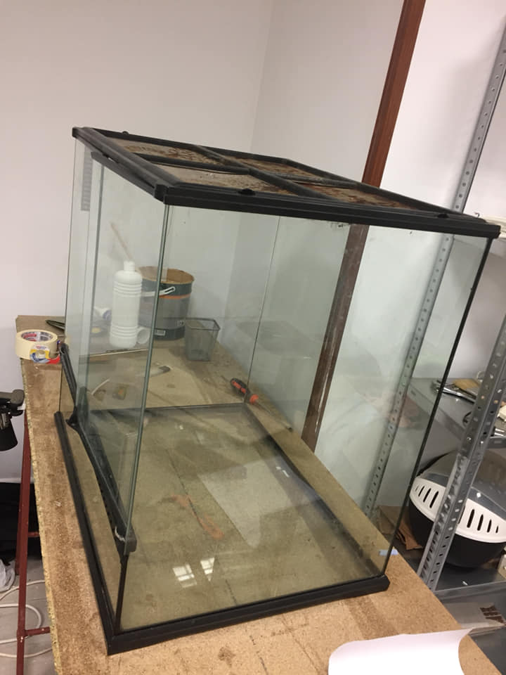 el terrario ccomo puede verse esta en perfectas condiciones, la rejilla superior tiene una pestaña rota pero que no impide su cierre perfecto y de forma segura.