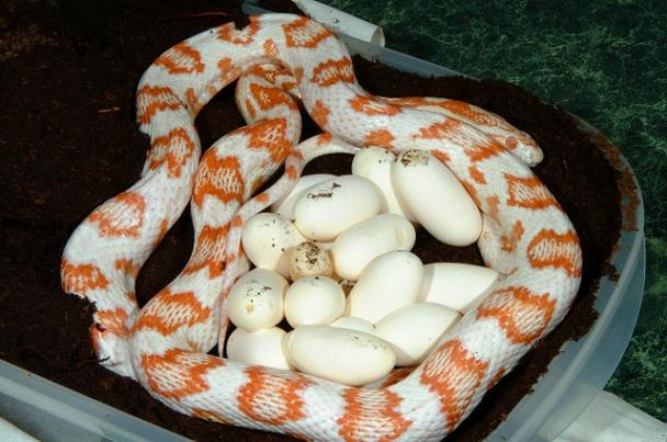 Las que he puesto como milksnake albinas no desarrolaran amarillo sobre el color de fondo por lo que quedaran blanco puro y rojo. no tiene que ver con la amelanisticas normales. bueno, si en que llevan la misma mutacion, el resto es seleccion de color como las candys y las reverse