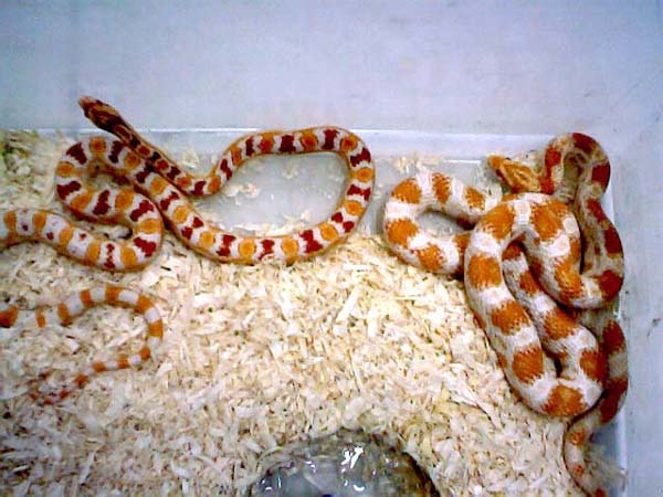 No sabia donde meter estas fotos y al final las pongo aki. Son dos guttatus supuestas fase MILKSNAKE albinas. Curiosamente me parecen mas candycane en el colorido que la candy que poseo. Pongo fotos de las 3