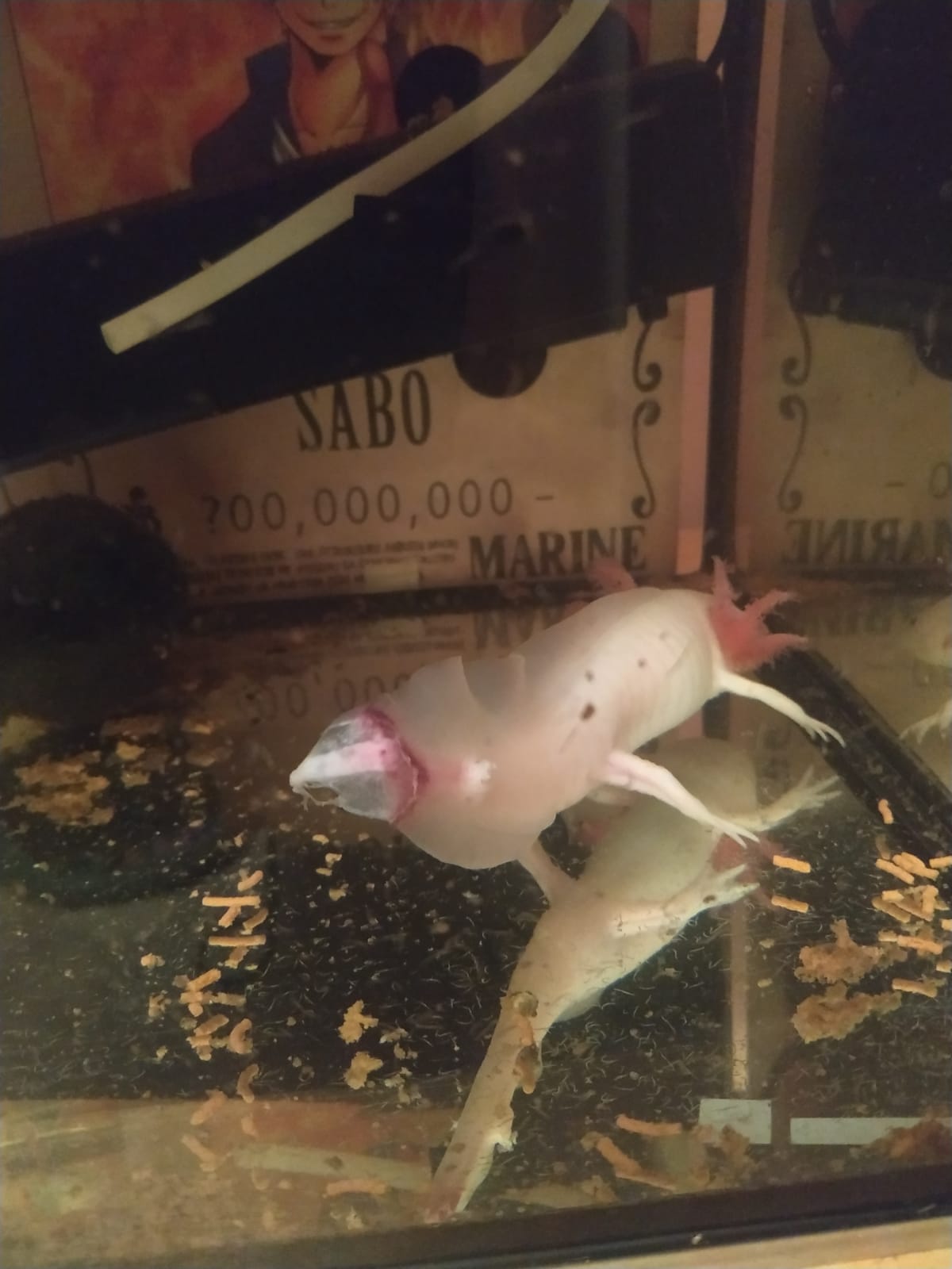 El veterinario que entiende de ajolotes en mi zona está de vacaciones y no vuelve hasta el lunes. Yo no se si pensar que es un tumor o qué pero no se si aguantará 5 días...