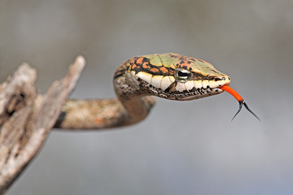 La dieta consiste, principalmente, de lagartos y mamíferos pequeños; a veces también de ranas.