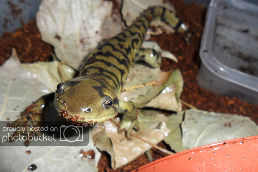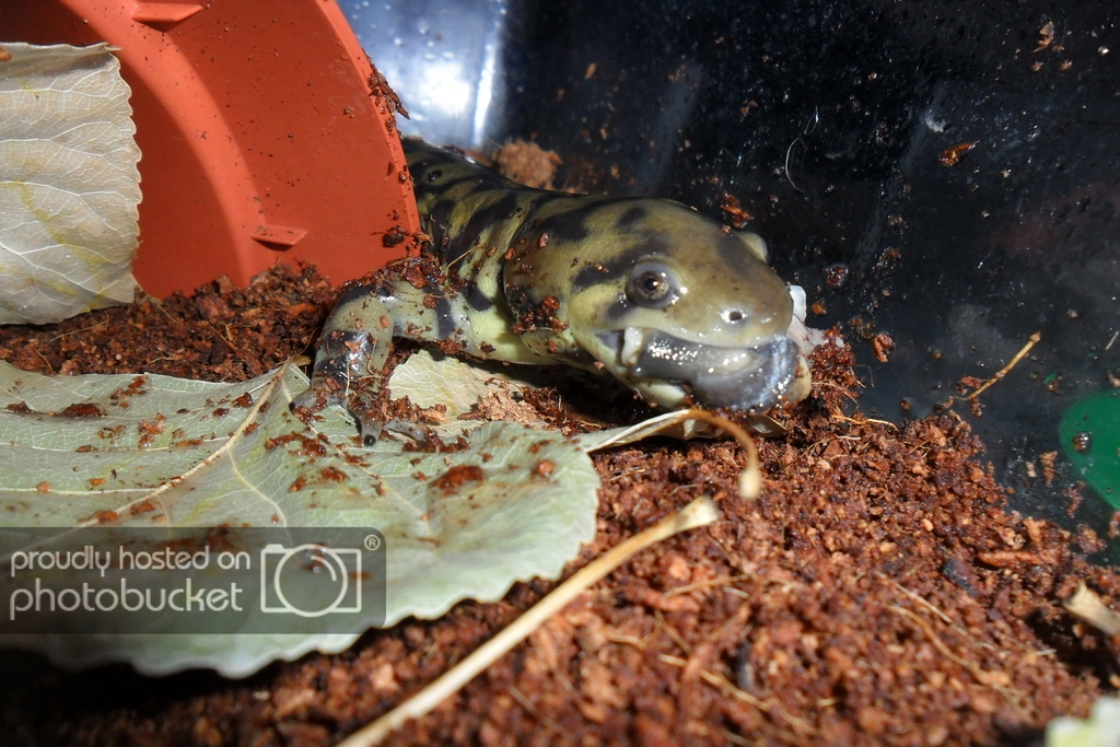 Abro este post para actualizar la situación de mis Ambystoma tigrinum, en Septiembre hará un año que las tengo y he de decir que son una satisfacción, pese a ser animales terrestres y fosoralies dan sus alegrías también cuando se dejan ver y como no, cuando comen, sacudiendo la cabeza y tirándose a por todo lo que ven.