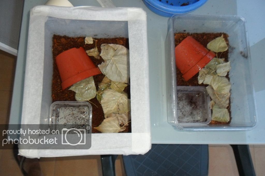 Ahora mismo están comiendo caracoles que compro congelados en el super sumplementados con calcio en polvo. Lo ideal son las lombrices, lo sé, pero las Dendrobaena no las tragan y las Lumbricus me duran dos días y cuesta lo suyo criarlas así que, con tiempo, algo haré.