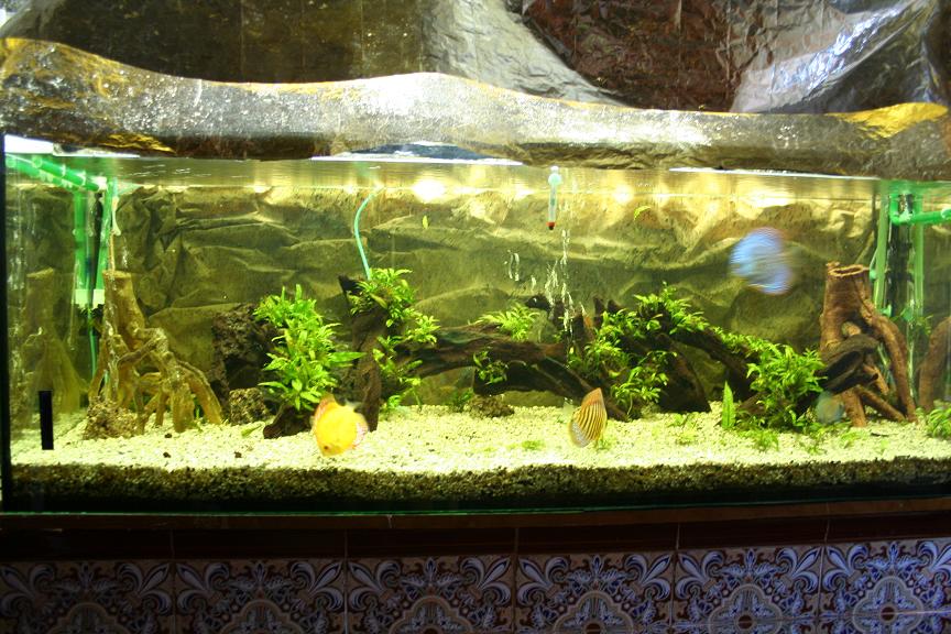 Ese acuario así como lo veis está en casa de mis padres y solo le dedico tiempo los sábados, cuando vuelvo a casa, el resto de la semana estoy fuera y nadie se ocupa de él...si no lo podo bien cada sábado se convertiría en una auténtica selva... y hay 6 discos, una pareja de escalares, lapices, borrachitos, ancistrus...etc etc y ni uno solo me toca las plantas