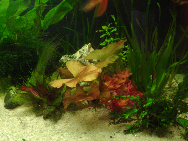 la idea es poner algunos caracidos guapos medianos , tipo corazon sangrante o similar que aguanten cierta corriente y algunos peces gato guapos