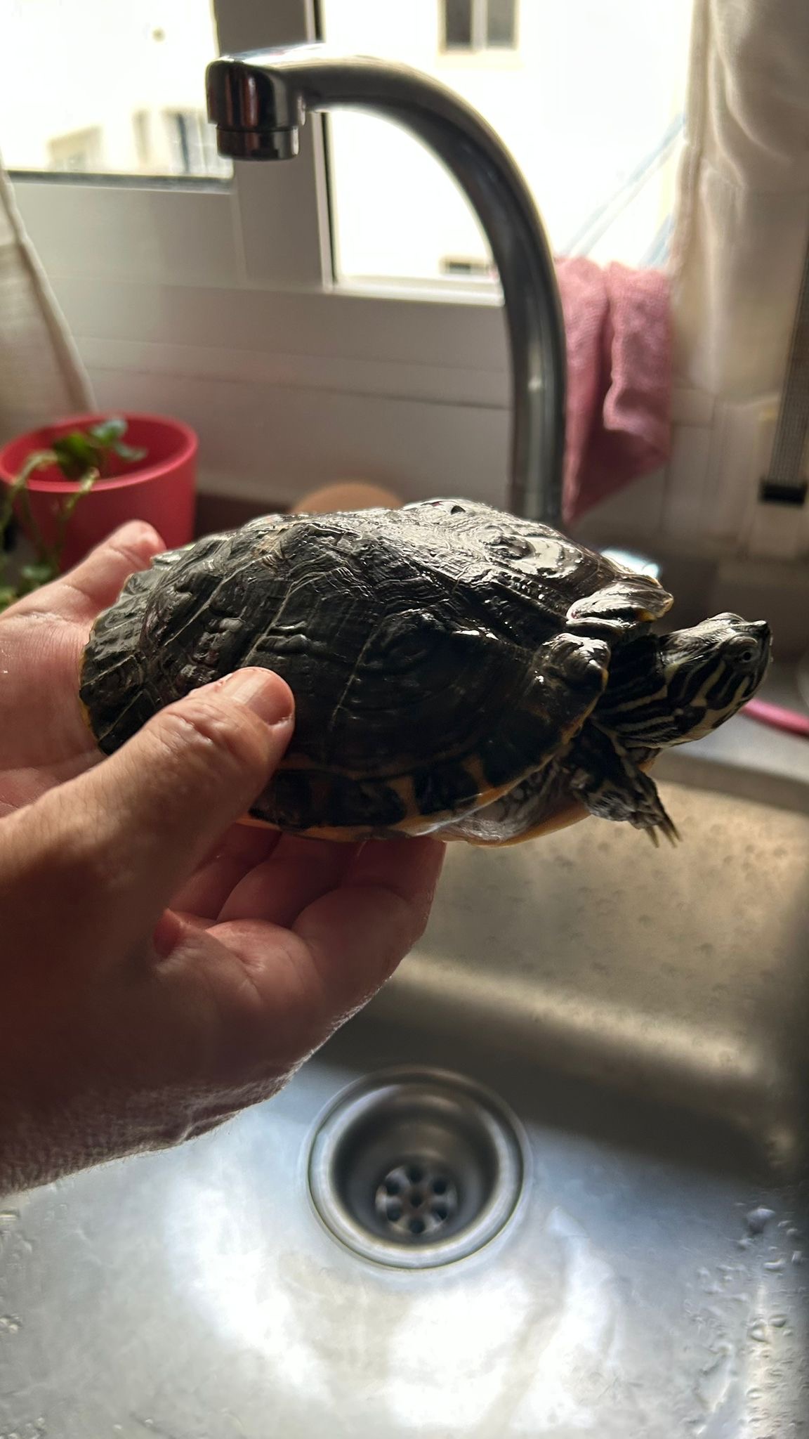 tengo una tortuga de agua que tiene 4 años y mide 14 cm., nunca ha estado enferma pero le falta espacio ya que le gusta mucho nadar. Me gustaría que pueda estar en un espacio mucho más grande y con compañía.