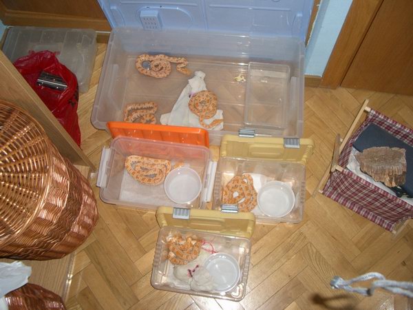 Escóndelas todas en el cesto ese que tienes, sería como en la pelis... va tu mujer a por la ropa y PAM.... 800 serpientes retorciendose dentro del cesto jajaja.