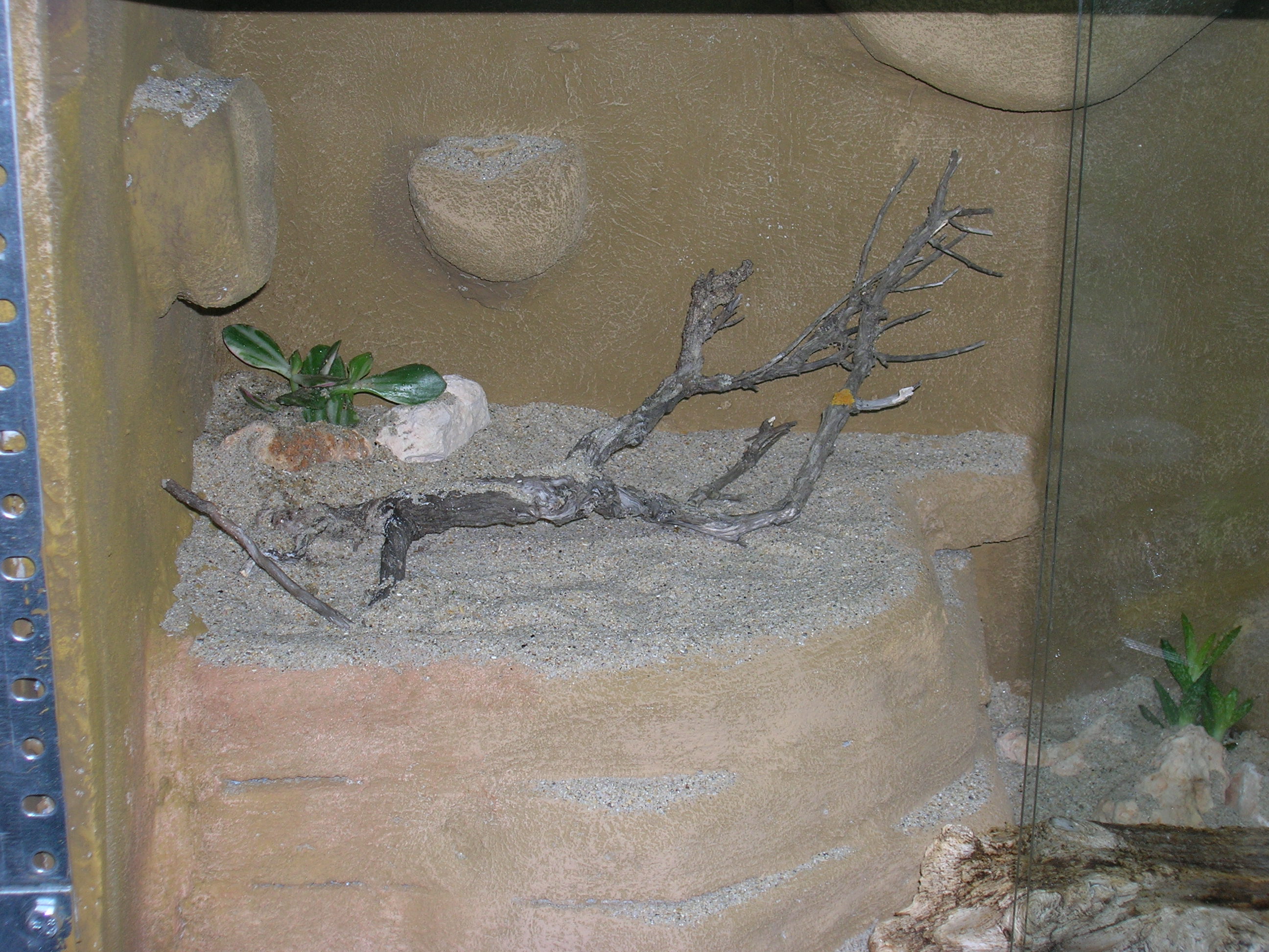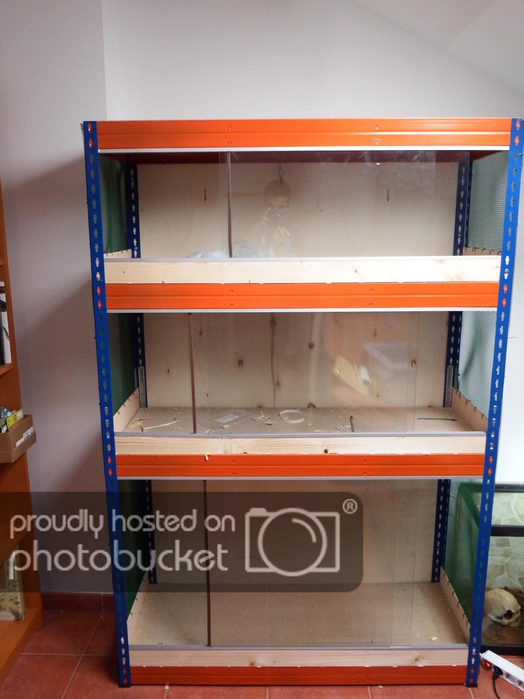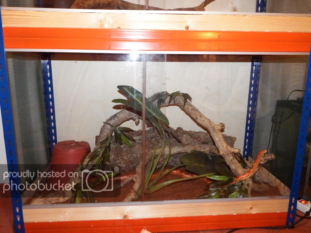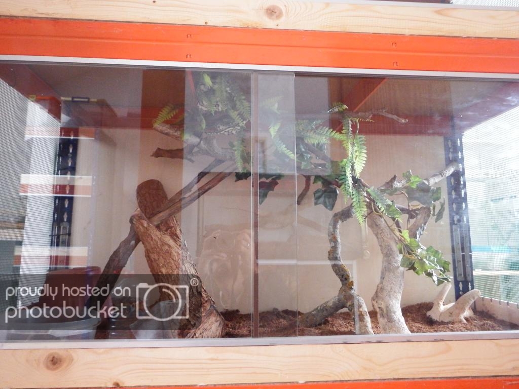 Aún falta mucha decoración, conseguir más ramas, corchos, plantas artificiales... Me falta aprovechar mucho la altura, tambien quiero pillar lianas y ver el modo de colgarlas. Otras cosas que haré serán refugios arborícolas similares a los nidos caja usados para pájaros y con estos soportes de masetas: