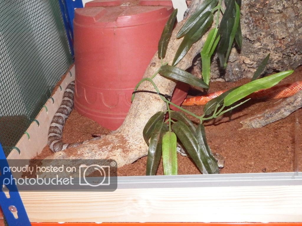Aquí dos hembras, una amelanística adulta y una subadulta anery, no es la decoración definitiva pero se ve que les gusta: