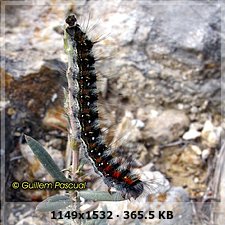 He estado buscando pero no he encontrado nada que se parezca a esta orgua. Tiene pinta de ser de alguna especie de mariposa noctura (por lo peluda que es), pero de aquí no paso.