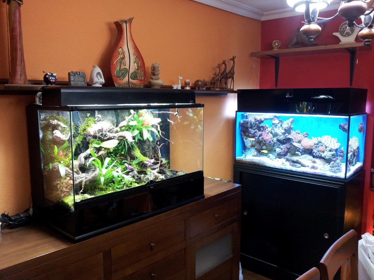 Los tenía en una esquina del comedor, en cada apartado tenía camaleones, y dependiendo de las necesidades, quitaba o ponía los separadores, ya que eran desmontables.
