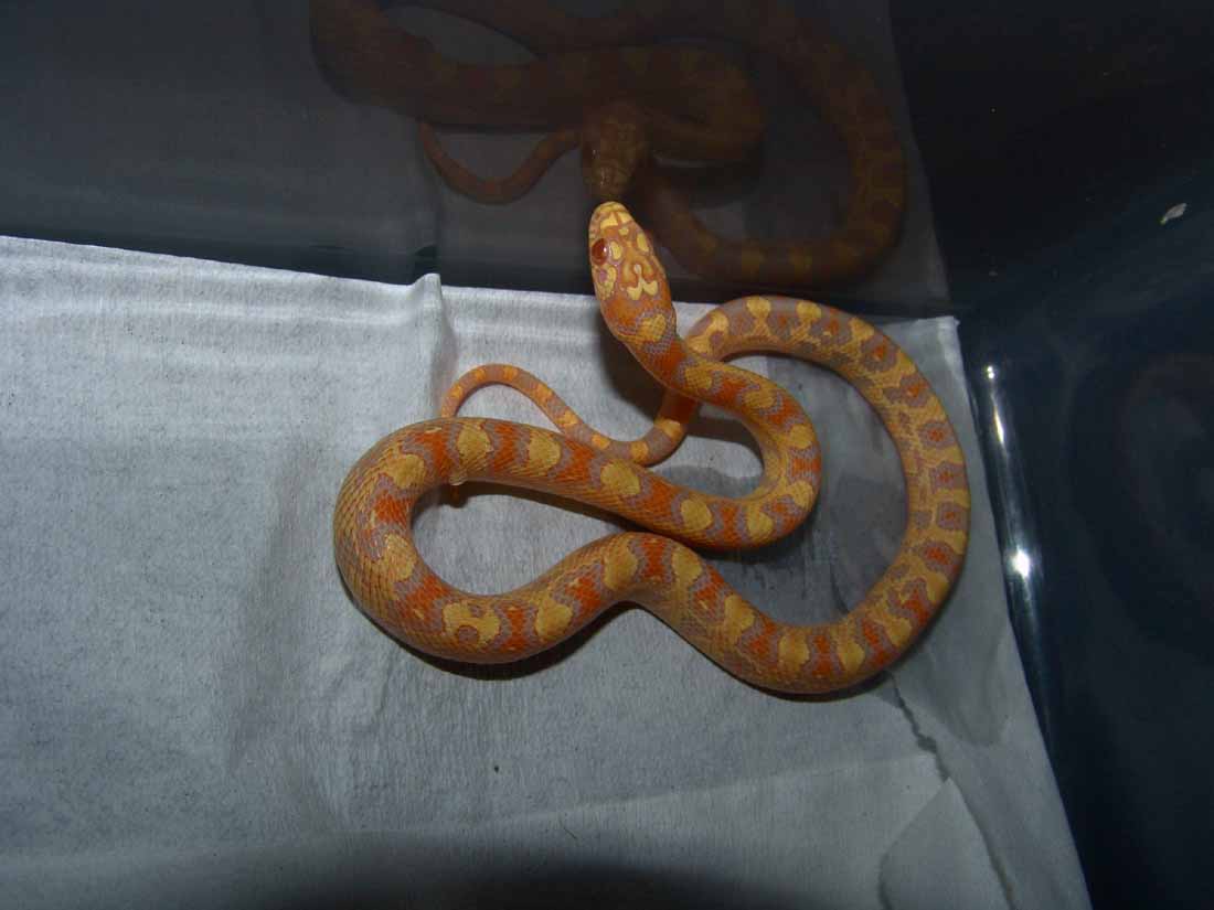 -o por el contrario podria ser una jungle que sale de juntar una Lampropeltis con una guttata mexcla de albina y anery hetero snow, por lo que tendria 50% de lampro y 50% de guttata