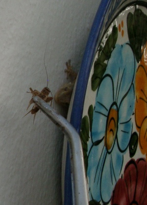 Esto de darle de comer a esta, ya lo he hecho varias veces y como tonta no es,el 80 % de las veces esta donde le di el 1º grillo.