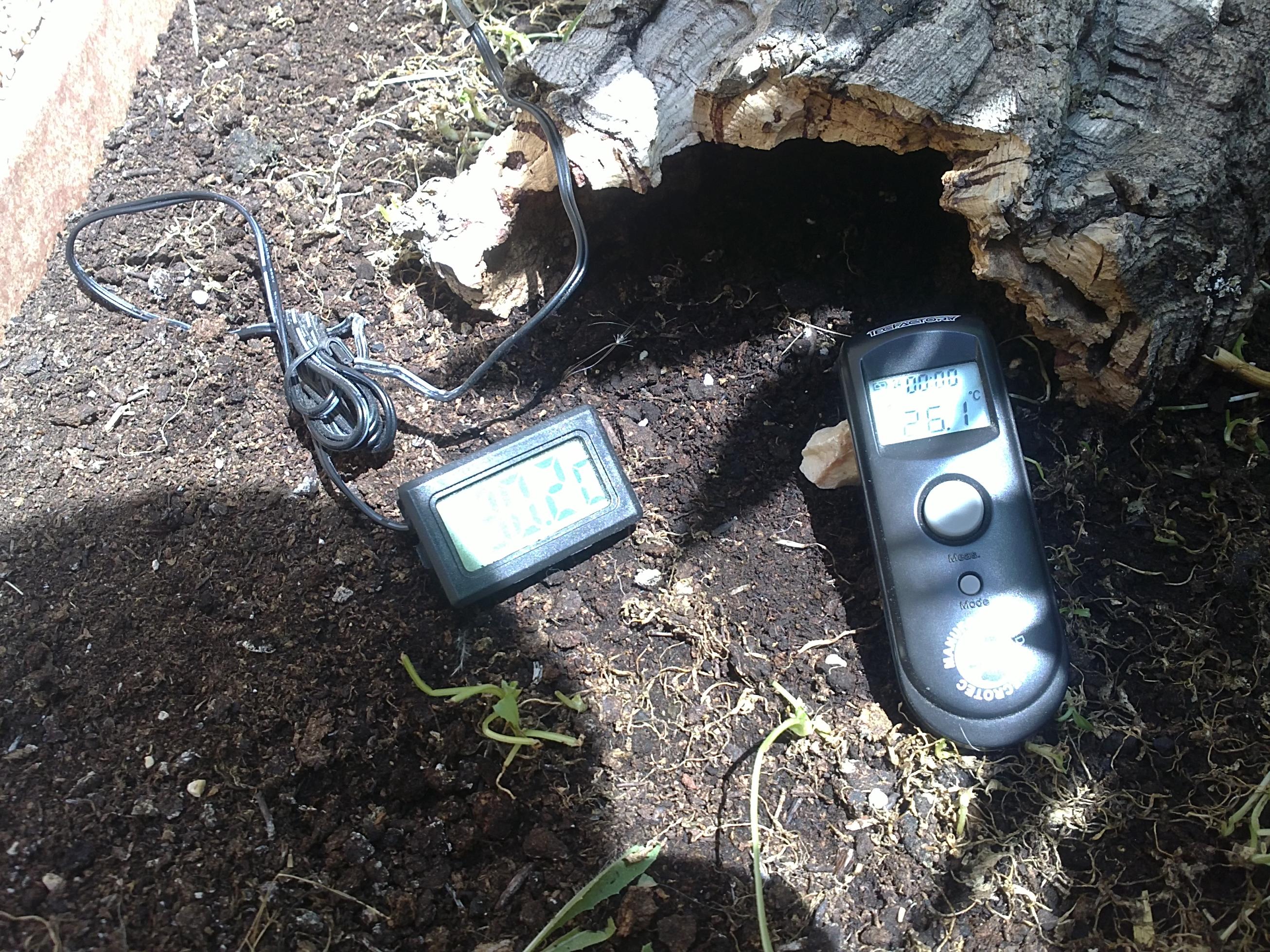 Hola a todos compañeros, quiero compartir con vosotros la informacion que eh obtenido a cerca de unas cuevas para nuestas terrestres, no queria poner nada en el foro hasta probar y ver resultados, se trata de la corteza de los alcornoques... son 100% naturales con certificacion ecologica FSC, son de corcho, con lo cual contribuye a un buen aislamiento para nuestros animales, contra el frio o el calor, de esta manera, es muy util aislar a nuestros animales de temperatura muy altas y bajas, y de la lluvia os voy a poner unas fotos de las temperaturas que pueden hbaer dentro y fuera de la cueva, asi mismo tambien de como estan instaladas, son apas tanto para interior como exterior.
