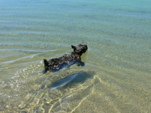 ( las lágrimas rojizas es de que acababa de meterse al mar a nadar y claro con la sal pues no veas como se le ponen al pobrete los ojitos que luego hay que escharle gotas; pero es que le encanta nadar jajaja...)