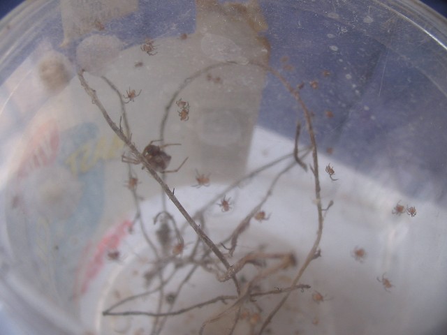 Bueno pues pasaron un par de meses, y la araña me puso 4 sacos de huevos.