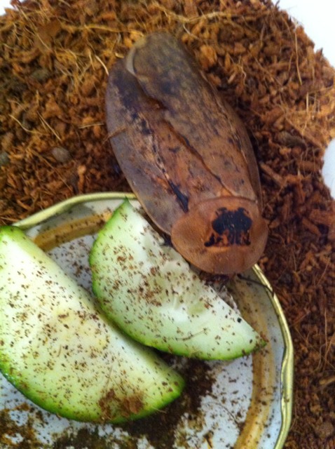 El otro dia limpiando el tupper de mis ultimas incorporaciones en la familia cucarachera, encontre un par de crias!!