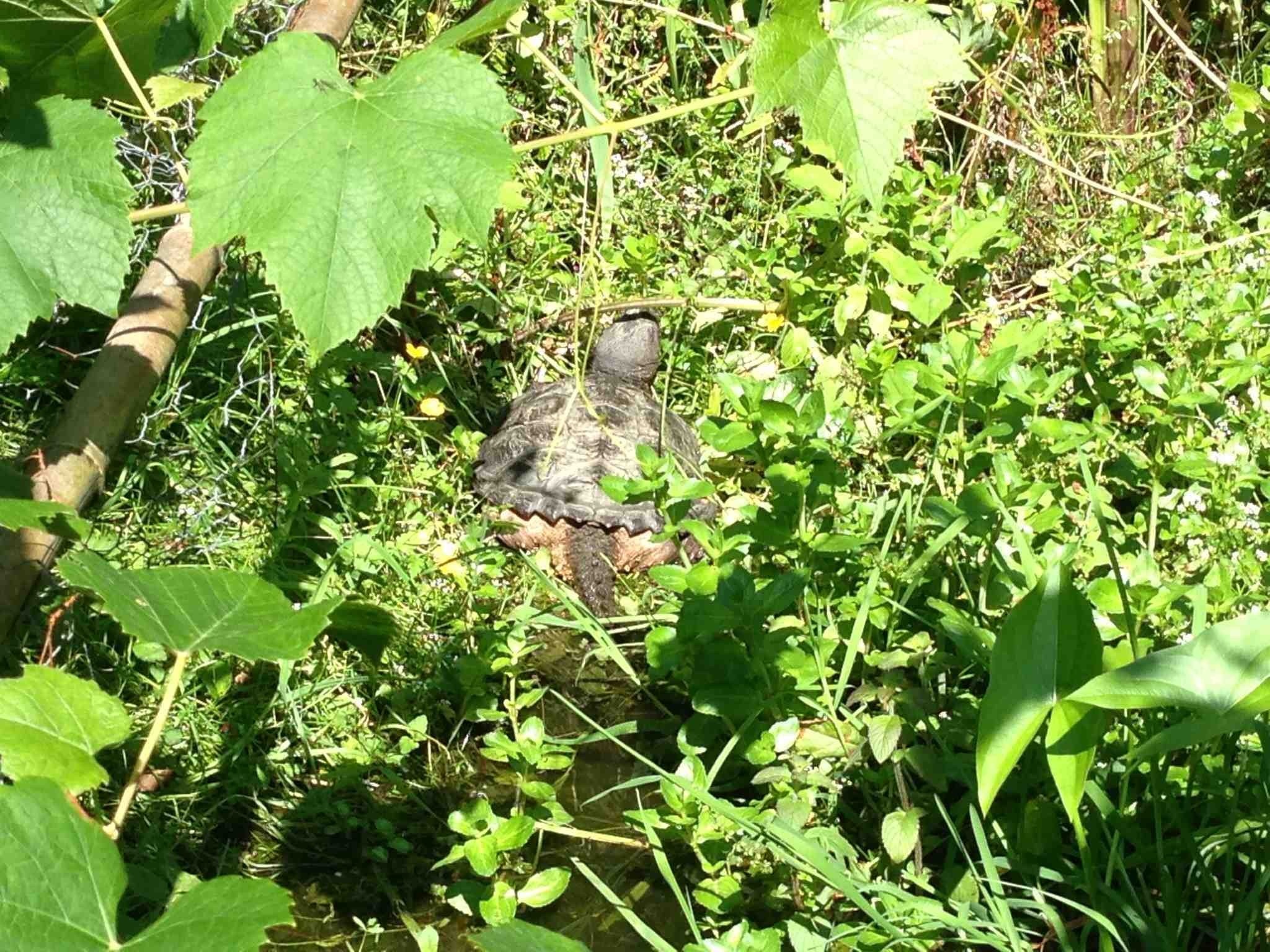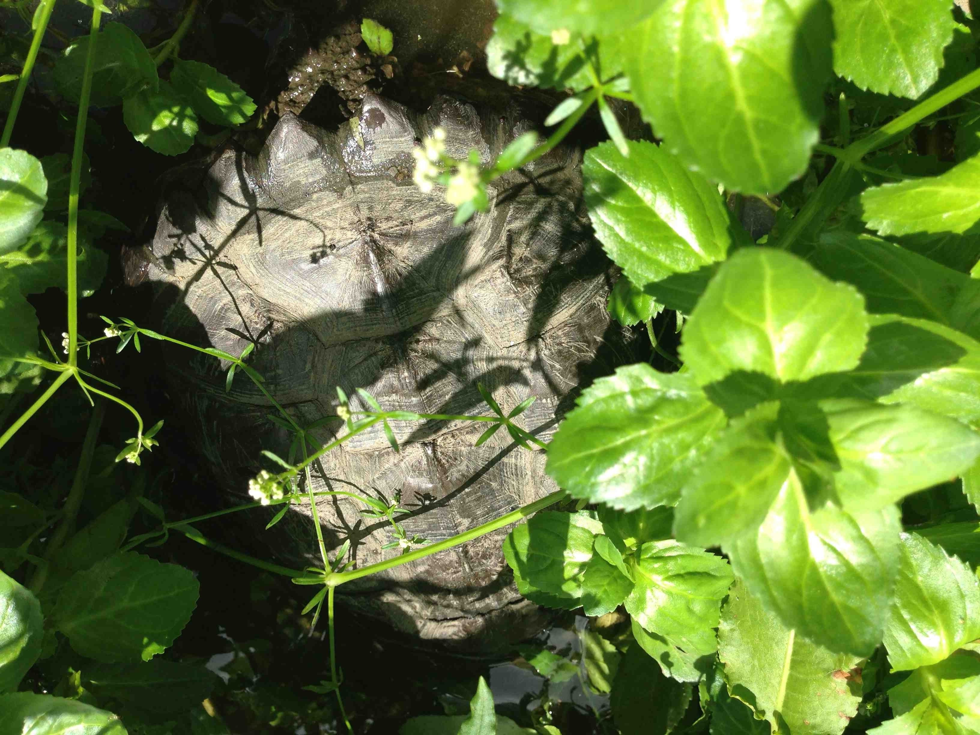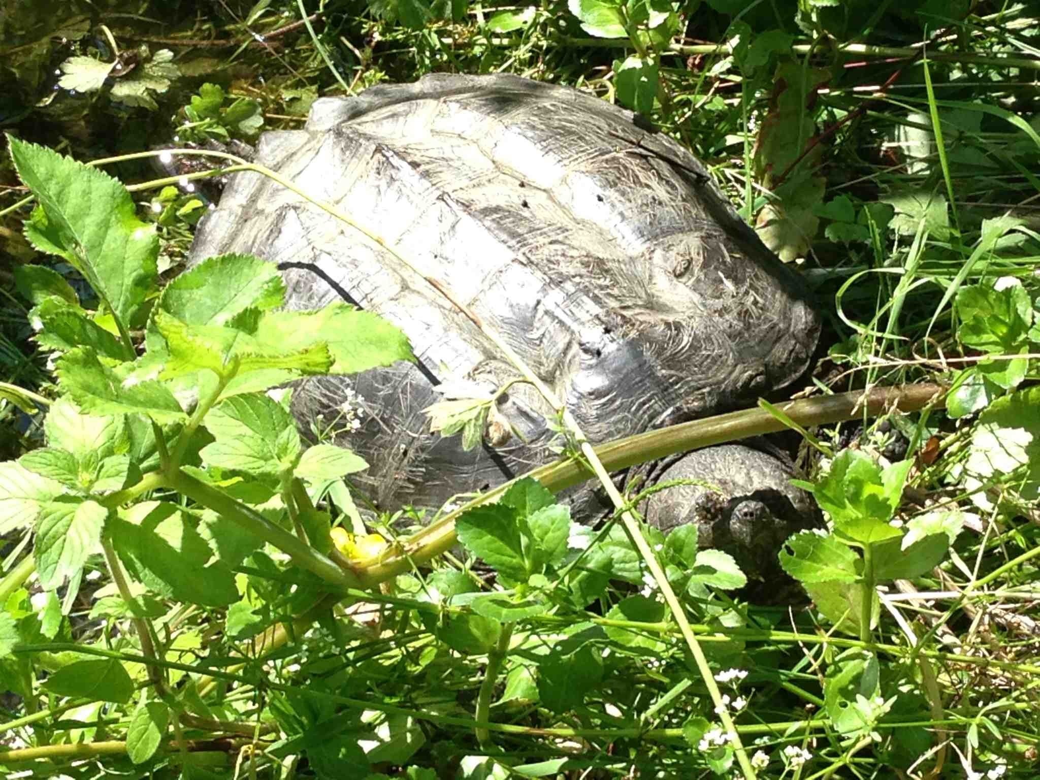 Hoy le he pillado asoleandose a su manera, un buen rato, no me ha dejado la vegetación de alrededores una buena foto pero se aprecia el caparazón todo reseco.haber si estos días que parece que va hacer bueno se me pone más a "huevo"