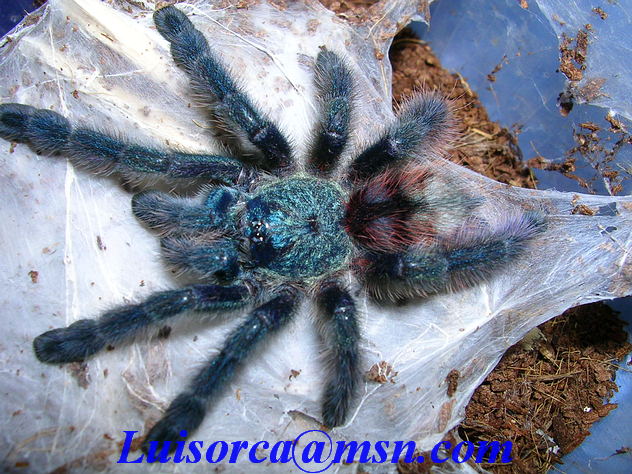 Aqui teneis este precioso animal que ya esta adqiriendo su bonita coloracion una de las tarantulas mas impresionantes aqui la teneis creciendo como una campeona