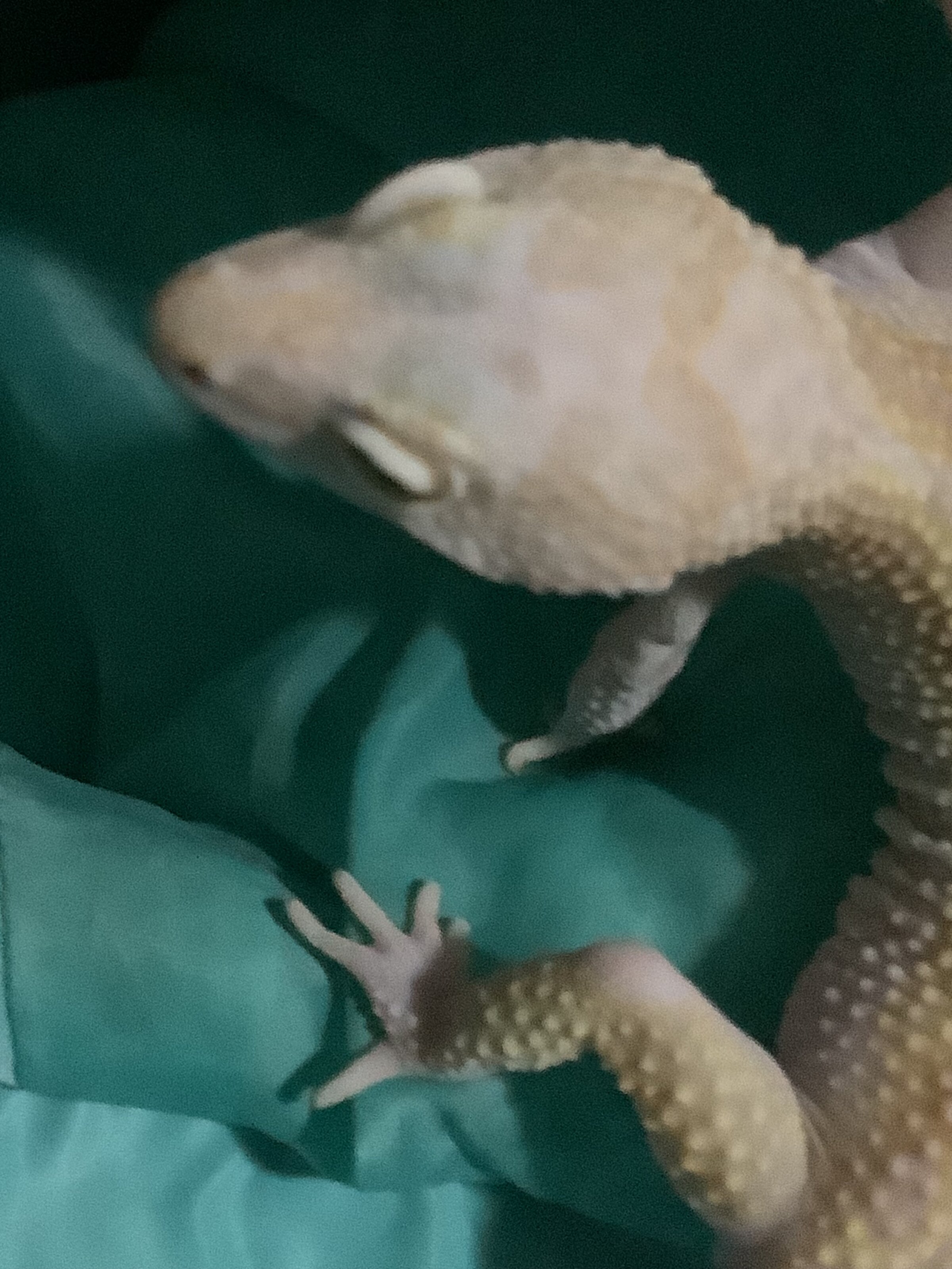 Hola, quisiera que alguien me pudiera guiar en cuanto la condición de mi Gecko leopardo hembra, la tengo desde hace casi tres meses y ella tiene 7 meses, hace unos días que le apareció una herida y quisiera recomendaciones sobre eso (espero se vea en las fotos) y sobre su estado físico.Muchas gracias